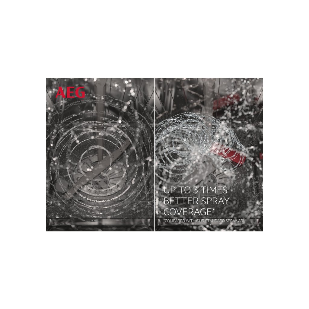 Inteligentní satelitní rameno s pěti sprchovacími rovinami zajišťuje až třikrát lepší pokrytí vodou než běžné myčky. Výsledkem je dokonale čisté nádobí v každém cyklu.