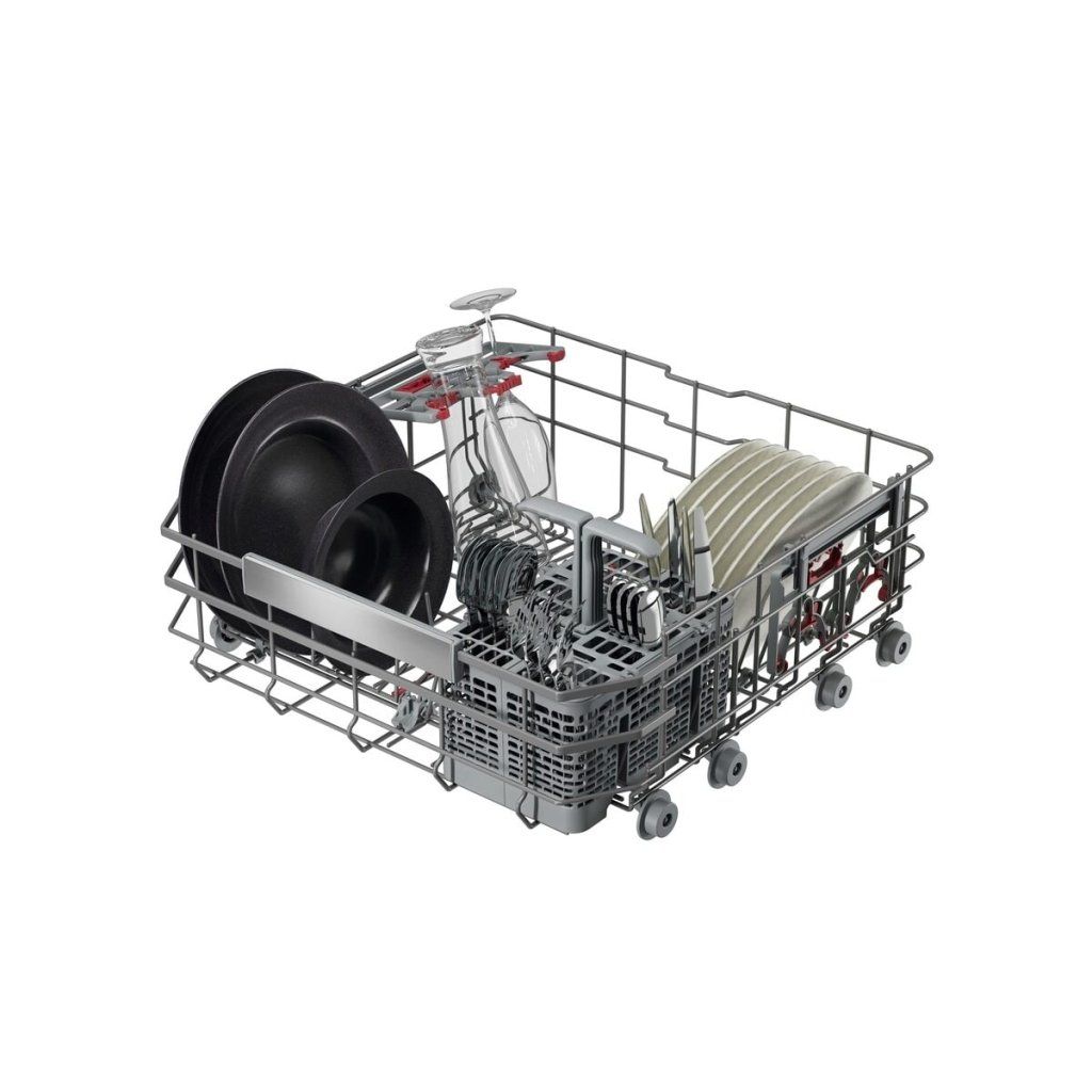 Dokonalé mytí a šetrné nakládání s vodou. Multifunkční koše Řada 9000: Multifunkční koše s hladkým pojezdem a zásuvka na příbory. Držáky pro upevnění sklenic a táců. Účinné mytí odstraňuje připečené nebo zaschlé zbytky potravin. Vysoce účinná vodní soustava spotřebuje pouhých 8,4 litru vody.Vícefunkční koše. Více možností plnění Koše EasyFlex Pro mají hladký pojezd a všechny jejich části se dají sklopit, aby se maximalizovala flexibilita. Protiskluzové gumové úchyty a hroty udržují nádobí a sklenice na místě a zabraňují jejich narážení. Do zásuvky na příbory se vejdou metličky, naběračky i malé šálky.