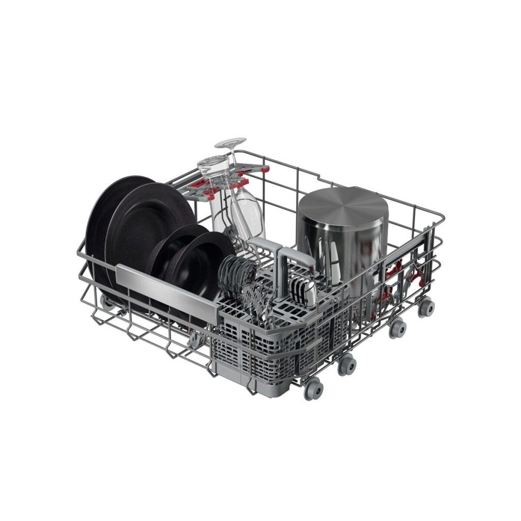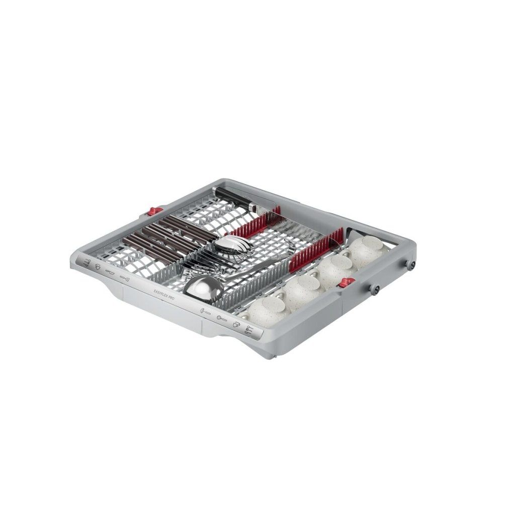 Koše EasyFlex Pro mají hladký pojezd a všechny jejich části se dají sklopit, aby se maximalizovala flexibilita. Protiskluzové gumové úchyty a hroty udržují nádobí a sklenice na místě a zabraňují jejich narážení. Do zásuvky na příbory se vejdou metličky, naběračky i malé šálky.