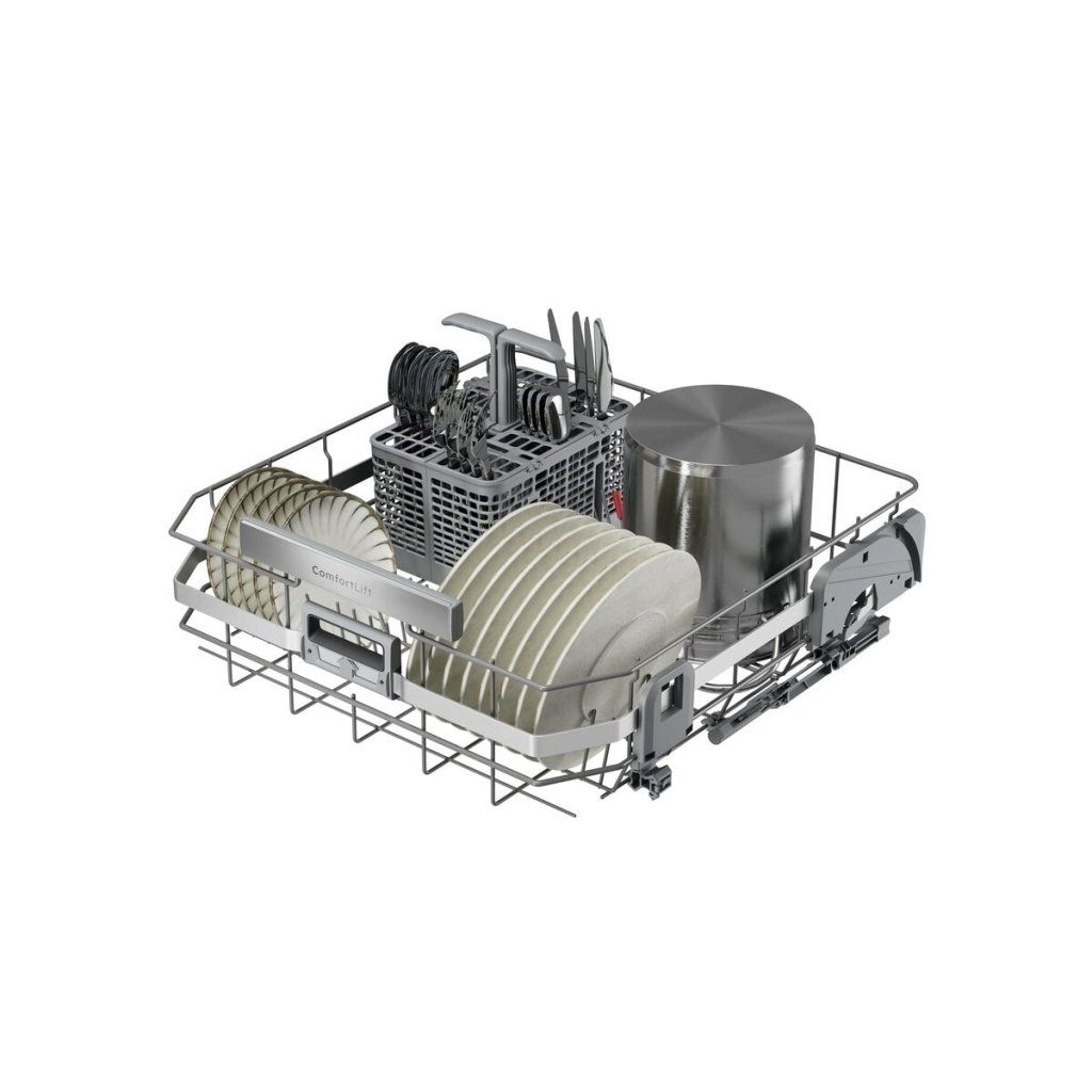 XXL prostor, multifunkční koše. Vynikající účinnost mytí 9000 XXL: Uvnitř o 5 cm vyšší, přitom se vejde pod standardní kuchyňskou linku. Multifunkční koše s držáky na sklenice a plechy. Výkonné mytí odstraňuje připečené zbytky potravin. Vysoce účinná vodní soustava spotřebuje pouhých 8,4 litru vody.ComfortLift®: Snadné plnění. Výjimečné výsledky ComfortLift® zvedne plně naložený koš o 25 cm pro rychlejší a snadnější plnění a vykládání. Při vytahování spodního koše ho speciálně navržené závěsy plynule zvednou do stejné výšky jako horní koš.