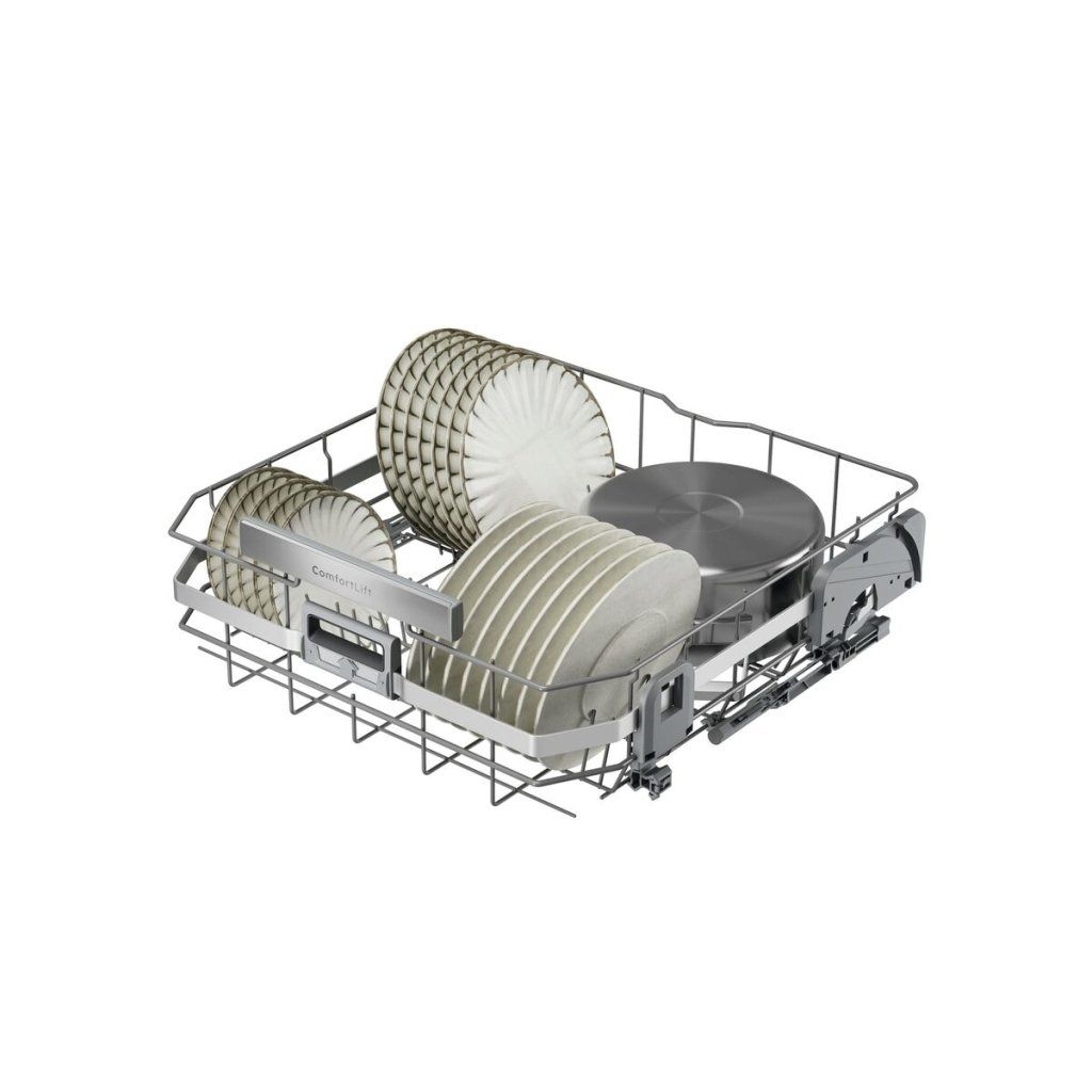 Vysoká účinnost mytí. Prostorné, všestranné koše Řada 8000 poskytuje účinné mytí, které odstraňuje připečené nebo zaschlé zbytky potravin. Všestranné koše s hladkým pojezdem, sklopnými sekcemi a jedinečnými držáky na sklenice. Vysoce účinná vodní soustava spotřebuje pouhých 8,4 litru vody.ComfortLift®: Snadné plnění. Výjimečné výsledky ComfortLift® zvedne plně naložený koš o 25 cm pro rychlejší a snadnější plnění a vykládání. Při vytahování spodního koše ho speciálně navržené závěsy plynule zvednou do stejné výšky jako horní koš.