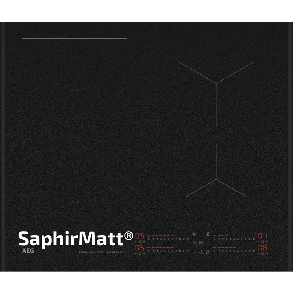 Indukční varná deska AEG NII64B30AZ s chytrými senzory SenseBoil & Fry, odolným matným sklem SaphirMatt®, flexibilní funkcí Bridge, automatickým odsáváním Hob2Hood® a PowerBoostem pro okamžitý výkon.