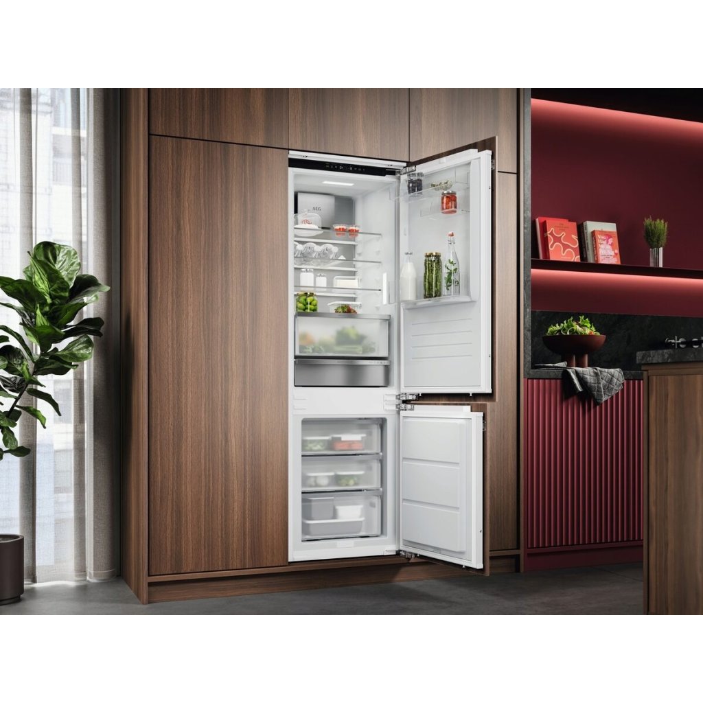 Pokročilá přesnost chlazení. Technologie No Frost brání tvorbě námrazy. Chladnička s mrazničkou 9000 No Frost ZeroDegree nabízí přesné chlazení všech surovin. Zásuvka MultiChill 0° má pokročilou, nezávislou regulaci teploty, kterou lze optimalizovat pro syrové ryby a maso, zbytky hotových jídel a další.Zásuvka MultiChill 0°: Maximální flexibilita v uchovávání potravin Zásuvka MultiChill 0° poskytuje plnou kontrolu nad teplotou vhodnou pro skladováním masa a ryb. Pomocí aplikace můžete aktivovat programy pro různé potraviny, od chlazení nápojů až po bezpečné rozmrazení mražených surovin nebo uchování zbytků v co nejlepším stavu.TwinTech® No Frost – udržuje potraviny šťavnaté a vláčné Beznámrazová technologie TwinTech® využívá pokročilý dvojitý systém chlazení pro chladničku a mrazničku. Tato technologie zajišťuje, aby mraznička zůstala bez námrazy, zatímco si chladnička zachovává optimální vlhkost, což pomáhá chránit potraviny před vysycháním.