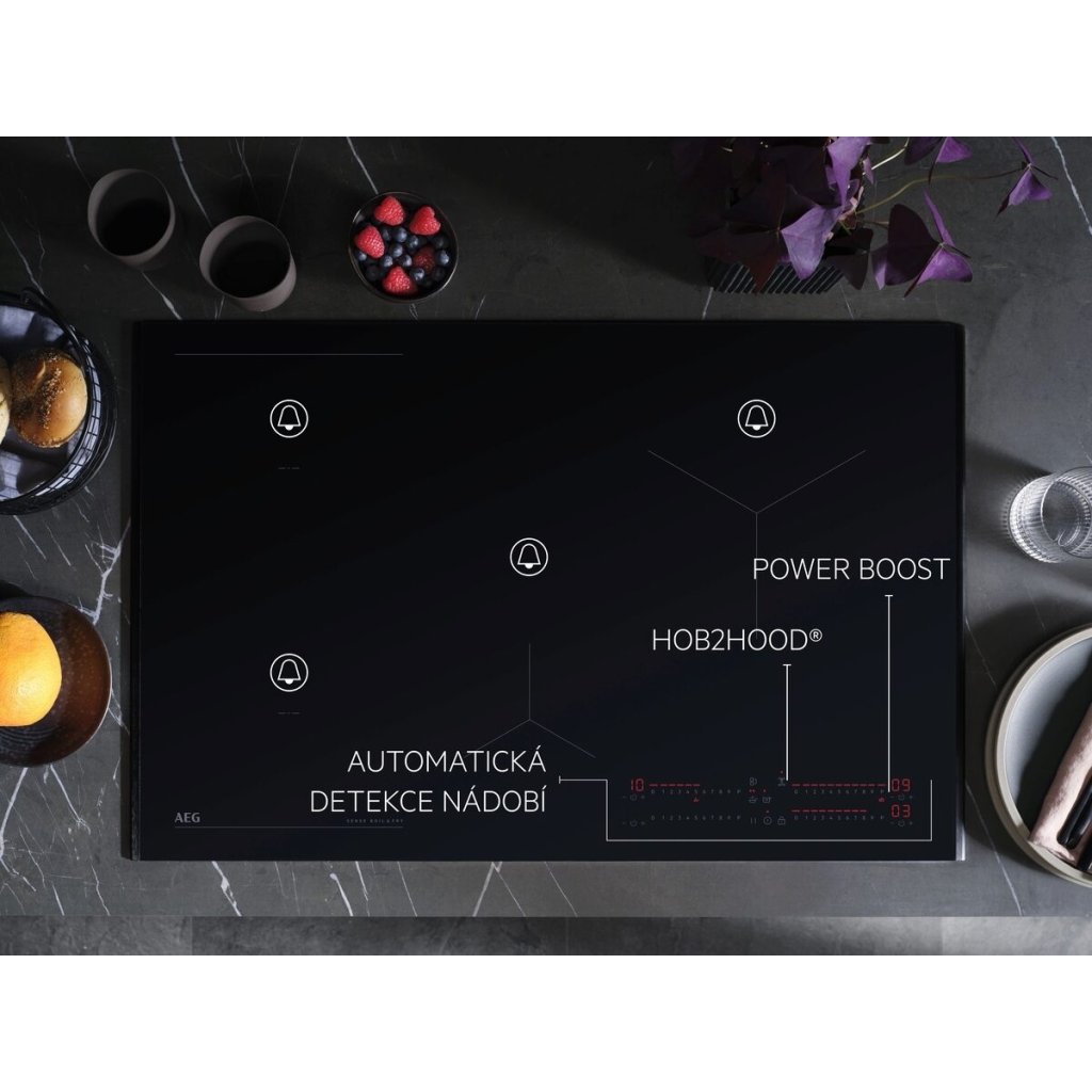 | Kontrolní funkce: | 3 krokové využití zbytkového tepla|akustický signál|funkce POWER (Booster) = rychlé ohřátí|dětský zámek|Eco časovač (využití zbytkového tepla)|flexibilní Power Management|Heat memory|propojen s odsavačem Hob2Hood|Samostatné ovládací zóny|zajištění/odjištění ovládacího panelu|Levý Bridge|minutka|pauza|SenseCook Boil|vypnutí zvuku |