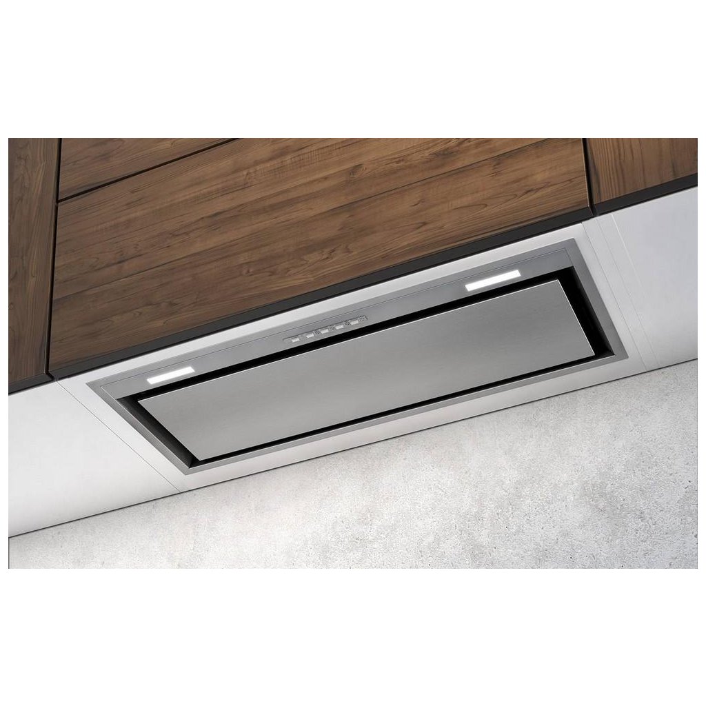 Luxusní vestavná digestoř vybavená výkonným motorem s nízkou spotřebou elektrické energie.