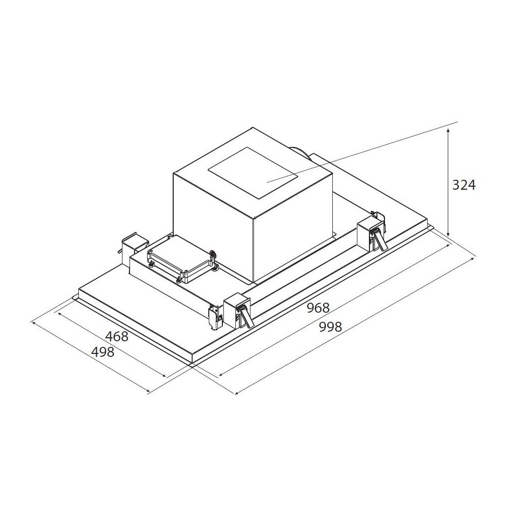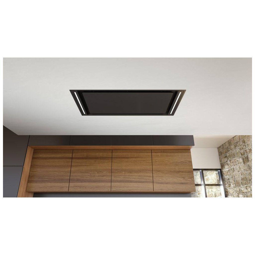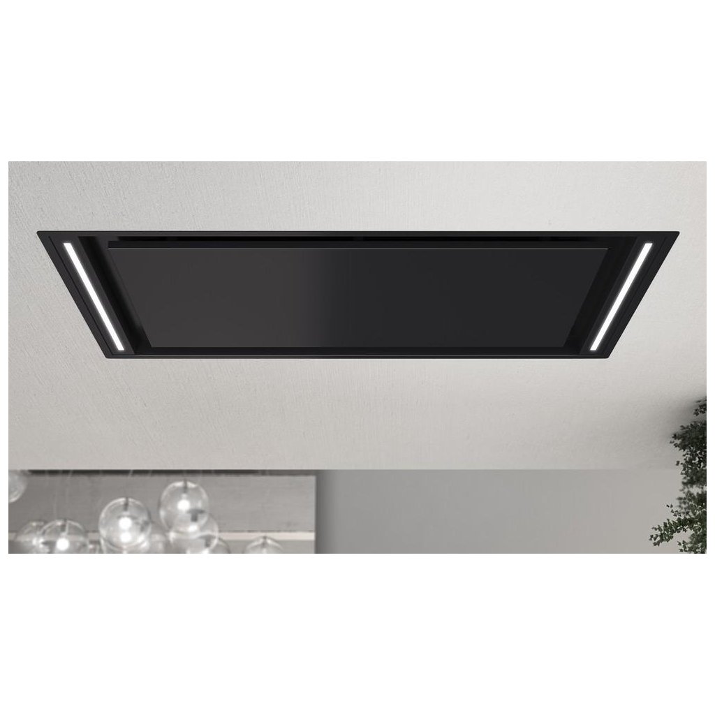 Luxusní stropní digestoř v elegantním provedení je vybavená výkonným motorem s nízkou spotřebou elektrické energie.