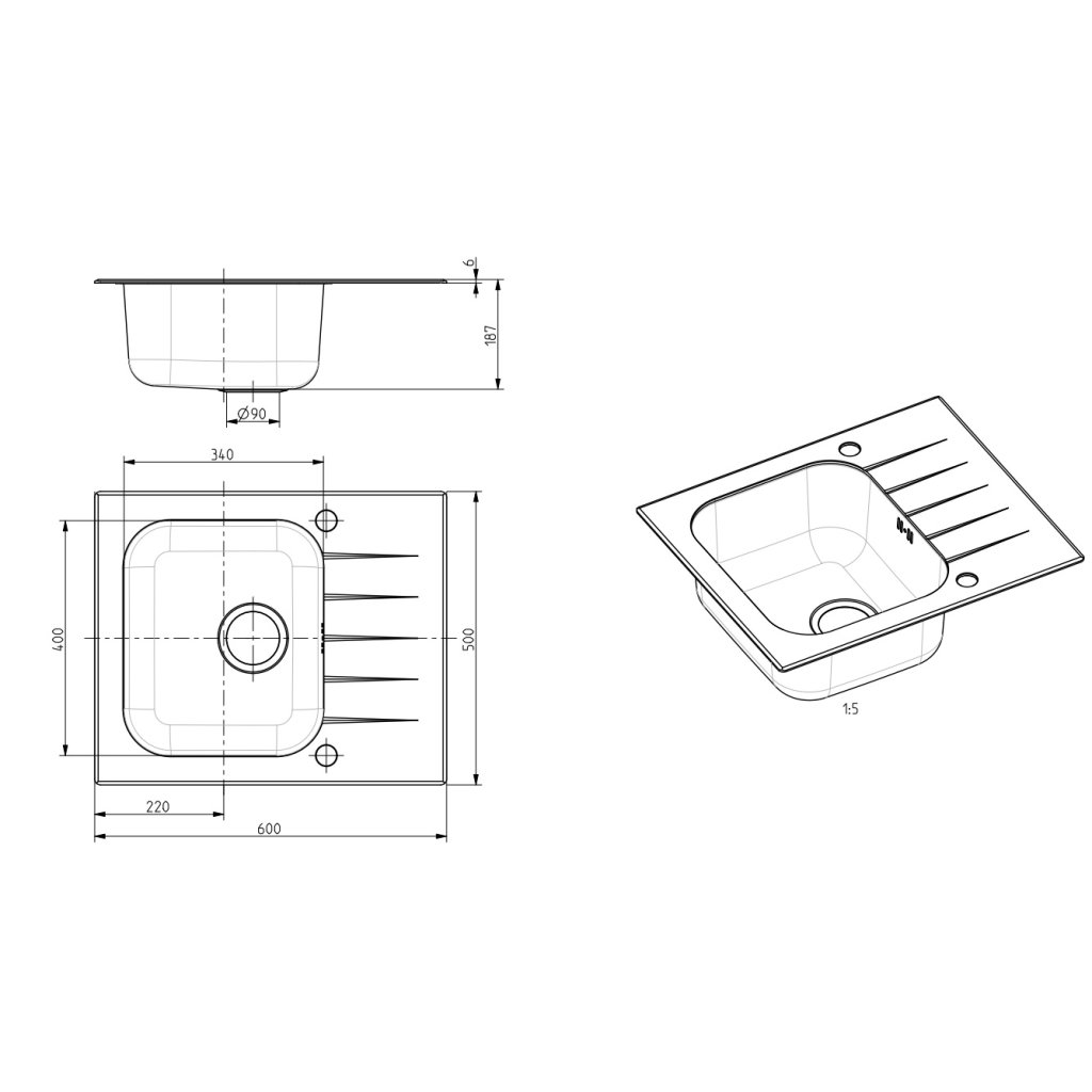 | Rozměry dřezu: | 600x500 mm |