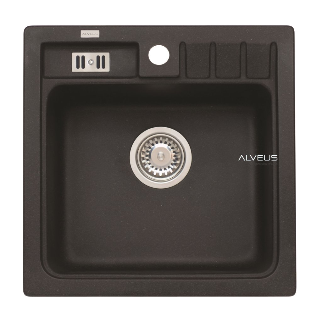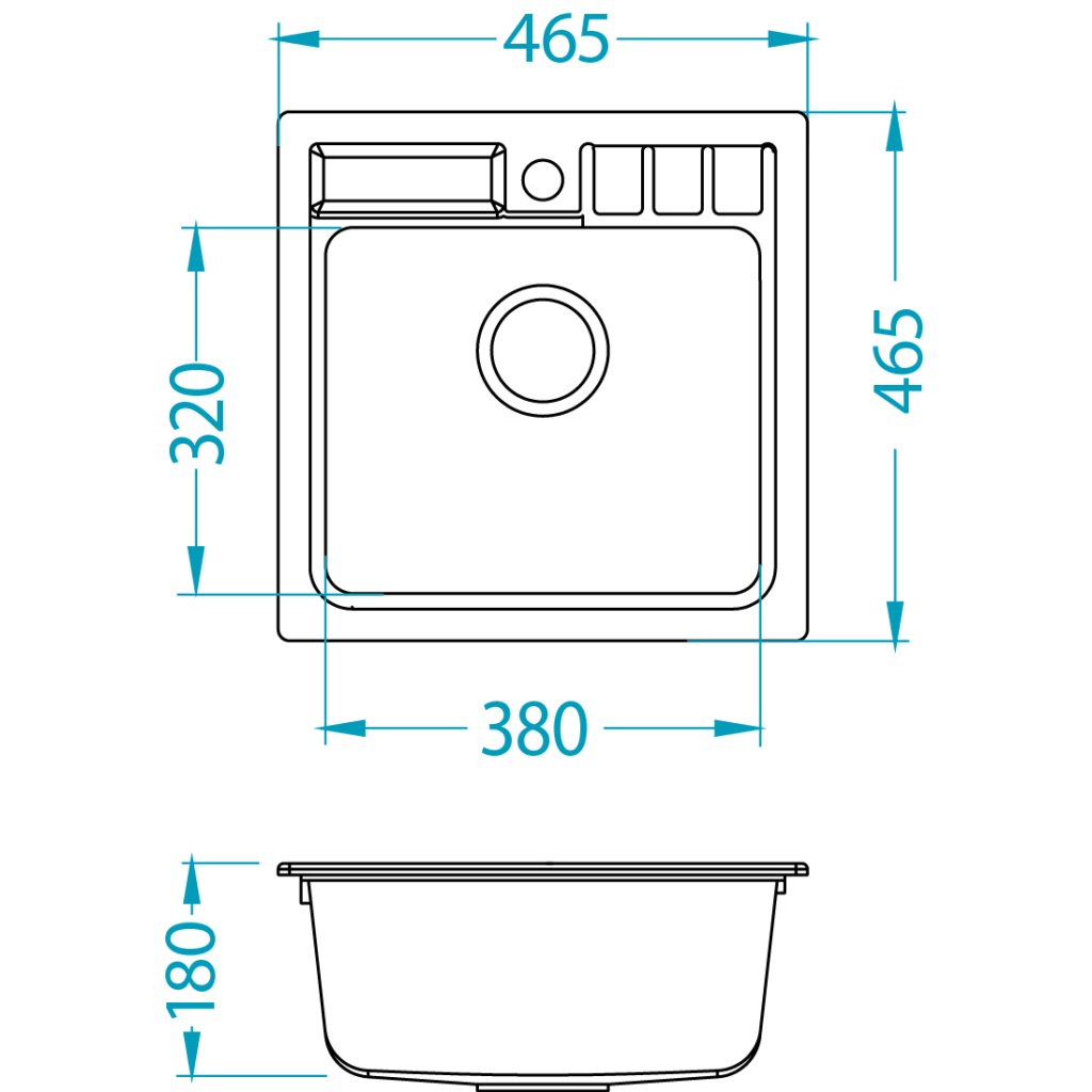 Vestavěný dřez, univerzál. Provedení : granitový dřez Vnější rozměr: 465 x 465 mm Rozměr vaničky: průměr 380x320x180 mm sítkový ventil 3 1/2 s přepadem, sifon pro úsporu místa s odbočkou na myčku Úchyty a těsnění pro upevnění dřezu v balení S otvorem pro baterii Návod pro instalaci v obrázcích na obale Instalace do skříňky o šířce 450 mm Váha: 10,63 kg Rozměr balení (mm): 655x560x267Vlastnosti produktu