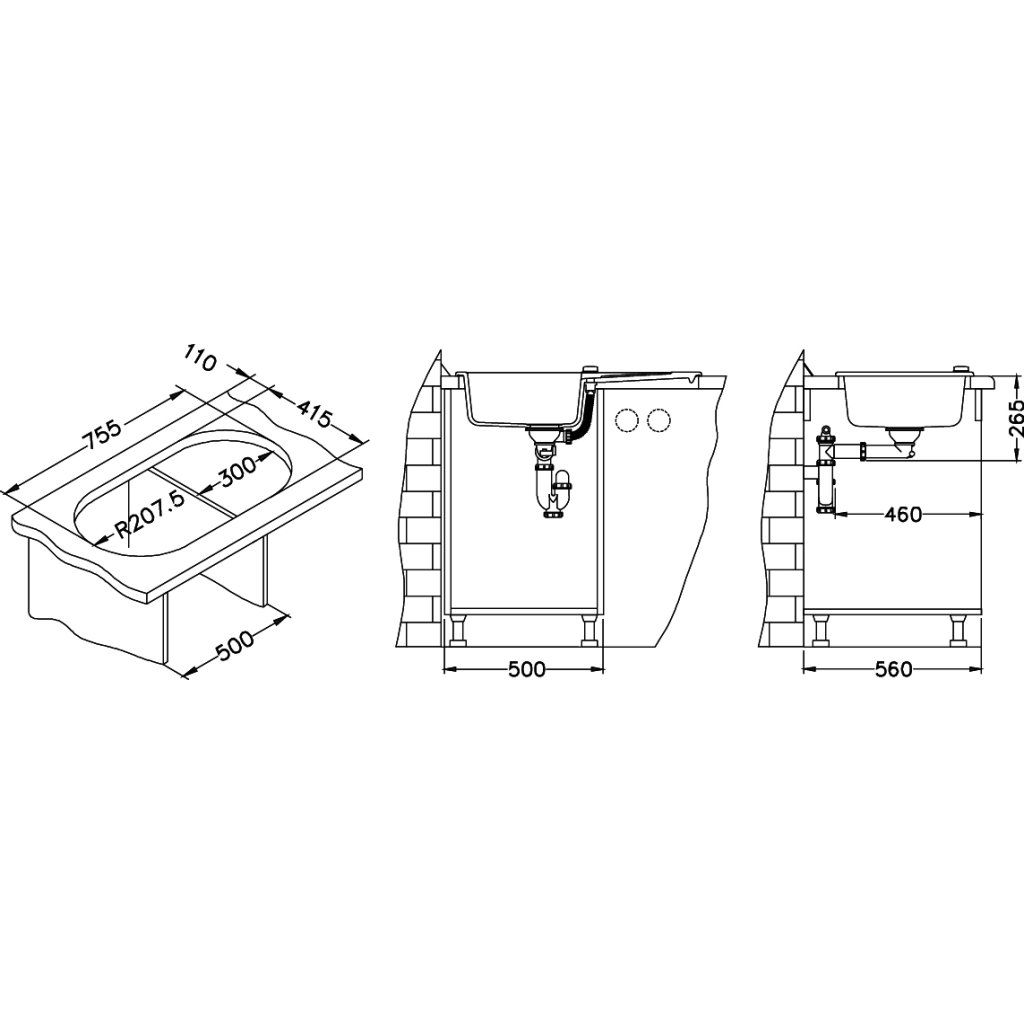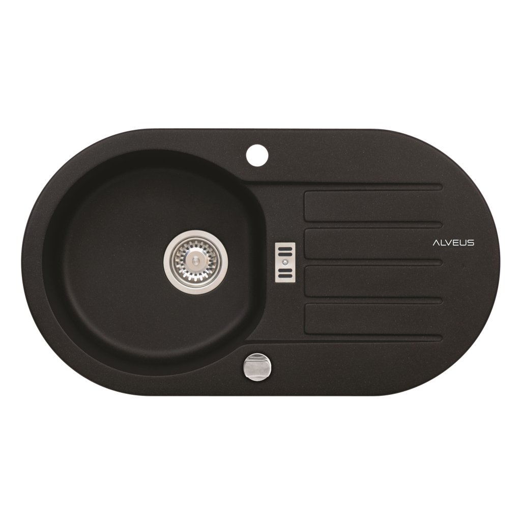 Vestavěný dřez, univerzál. Provedení : granitový dřez s odkapem Vnější rozměr: 775 x 435 mm Rozměr vaničky: průměr 357x360x160 mm Exentický sítkový ventil 3 1/2 s přepadem, sifon pro úsporu místa s odbočkou na myčku Úchyty a těsnění pro upevnění dřezu v balení S otvorem pro baterii Návod pro instalaci v obrázcích na obale Instalace do skříňky o šířce 500 mm Váha: 14,63 kg Rozměry balení (mm): 864x560x220Vlastnosti produktu