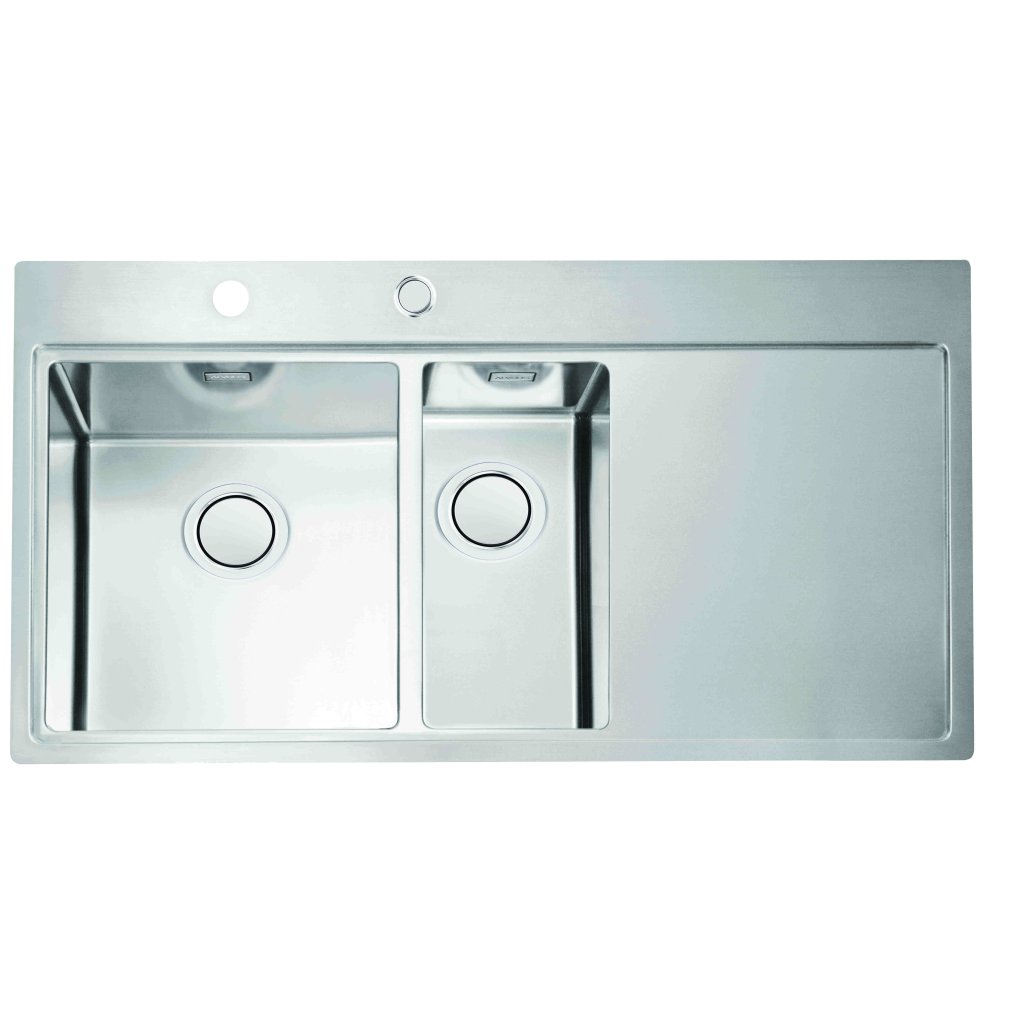 Plně a plošně vestavěný dřez (F/S) Vanička vlevo Provedení : KMB Vyrobeno z nerezové oceli CrNi 18/10 Vnější rozměr: 790x525 mm Odtoková souprava s přepadem a 3 1/2 sítkem Úchyty a těsnění pro upevnění dřezu v balení S otvorem pro baterii Návod pro instalaci v obrázcích na obale Instalace do skříňky o šířce 450 mmVlastnosti produktu