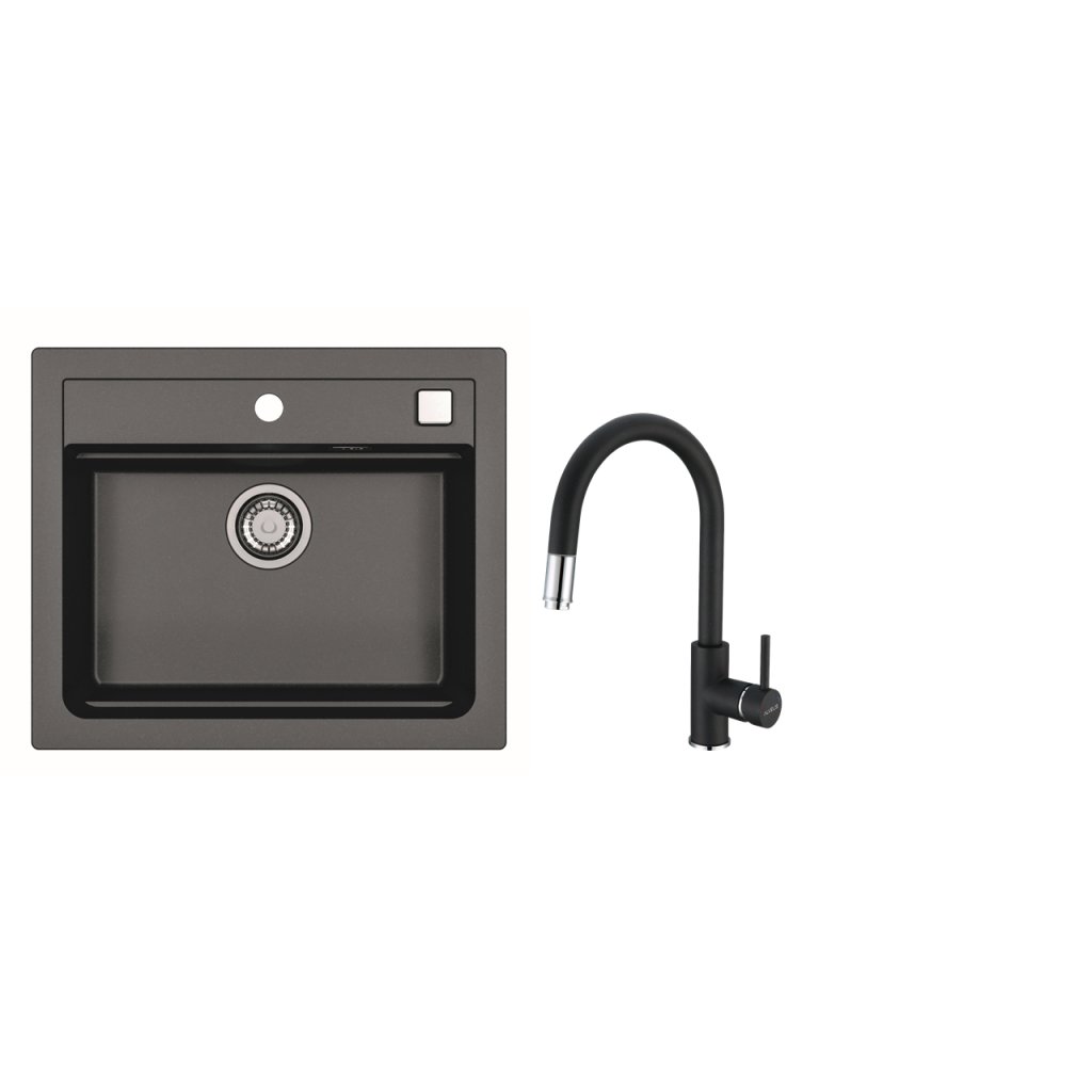 Vestavěný dřez, univerzál. Provedení : granitový dřez s odkapem Vnější rozměr: 590 x 500 mm Rozměr vaničky: 510 x 340 x 195 mm Exentrický sítkový ventil 3 1/2 s přepadem, sifon pro úsporu místa s odbočkou na myčku Úchyty a těsnění pro upevnění dřezu v balení S otvorem pro baterii Předfrézované dva otvory Návod pro instalaci v obrázcích na obale Instalace do skříňky při montáži: I- o šířce 600 mm, U- o šířce 800 mm Váha: 11,7 kg Rozměry balení (mm): 714x598x263 Vysokotlaká baterie otočné ramínko vytahovací sprška rozměr:207 x 380 mm provedení: barevný nástřikVlastnosti produktu