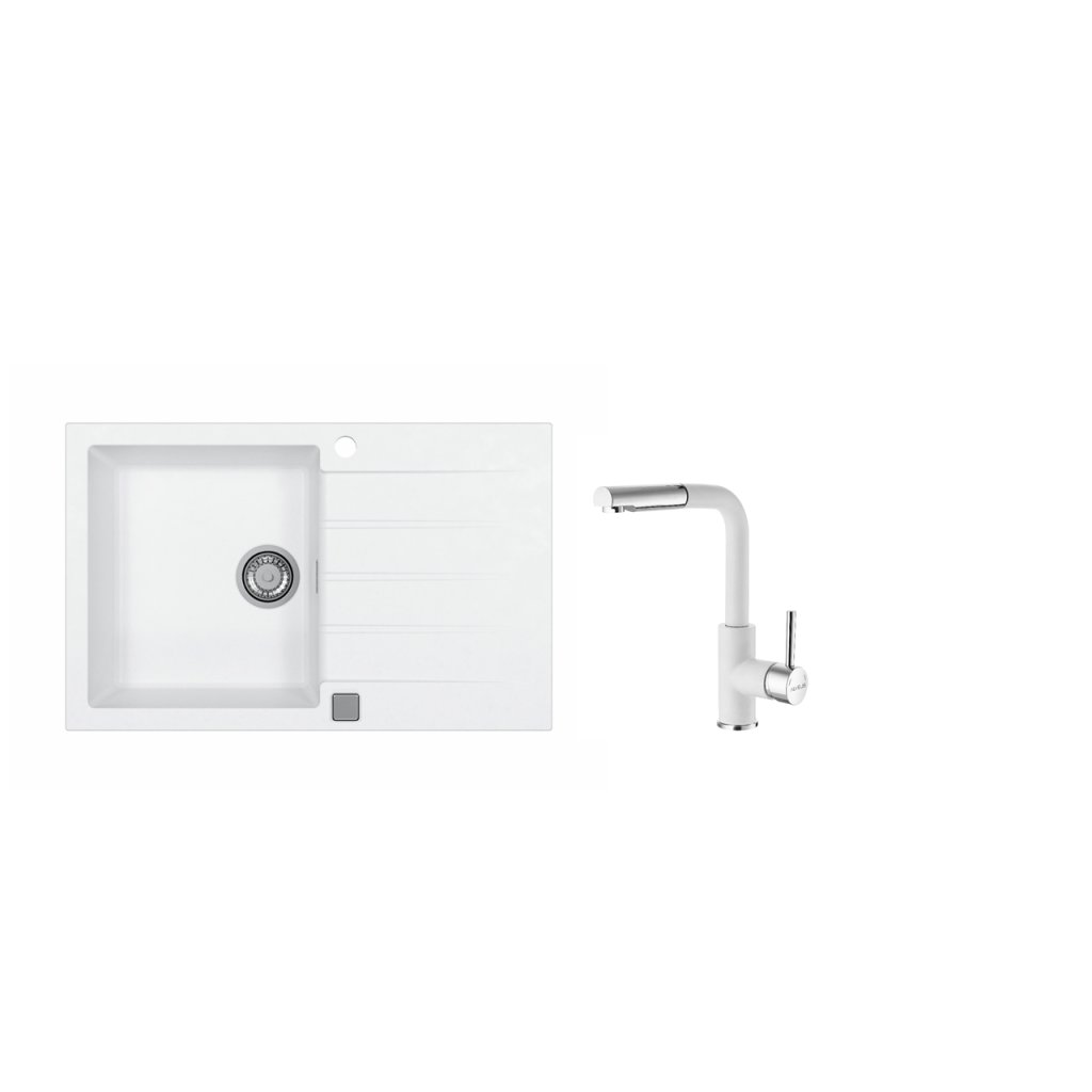Vestavěný dřez, univerzál. Provedení : granitový dřez s odkapem Vnější rozměr: 790 x 500 mm Rozměr vaničky: 375 x 425 x 200 mm Exentrický sítkový ventil 3 1/2 s přepadem, sifon pro úsporu místa s odbočkou na myčku Úchyty a těsnění pro upevnění dřezu v balení S otvorem pro baterii Návod pro instalaci v obrázcích na obale Instalace do skříňky o šířce 500 mm Váha: 14 kg Rozměr balení (mm): 904x598x263 Baterie Siros Vysokotlaká baterie otočné ramínko rozměr: 206 x 297 mm provedení: chrom/ barevný nástřik Granital / vytahovací koncovka Váha: 2,5 KgVlastnosti produktu