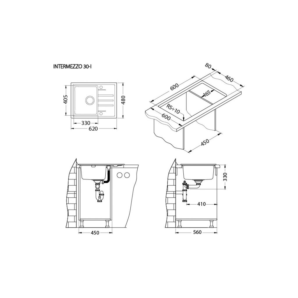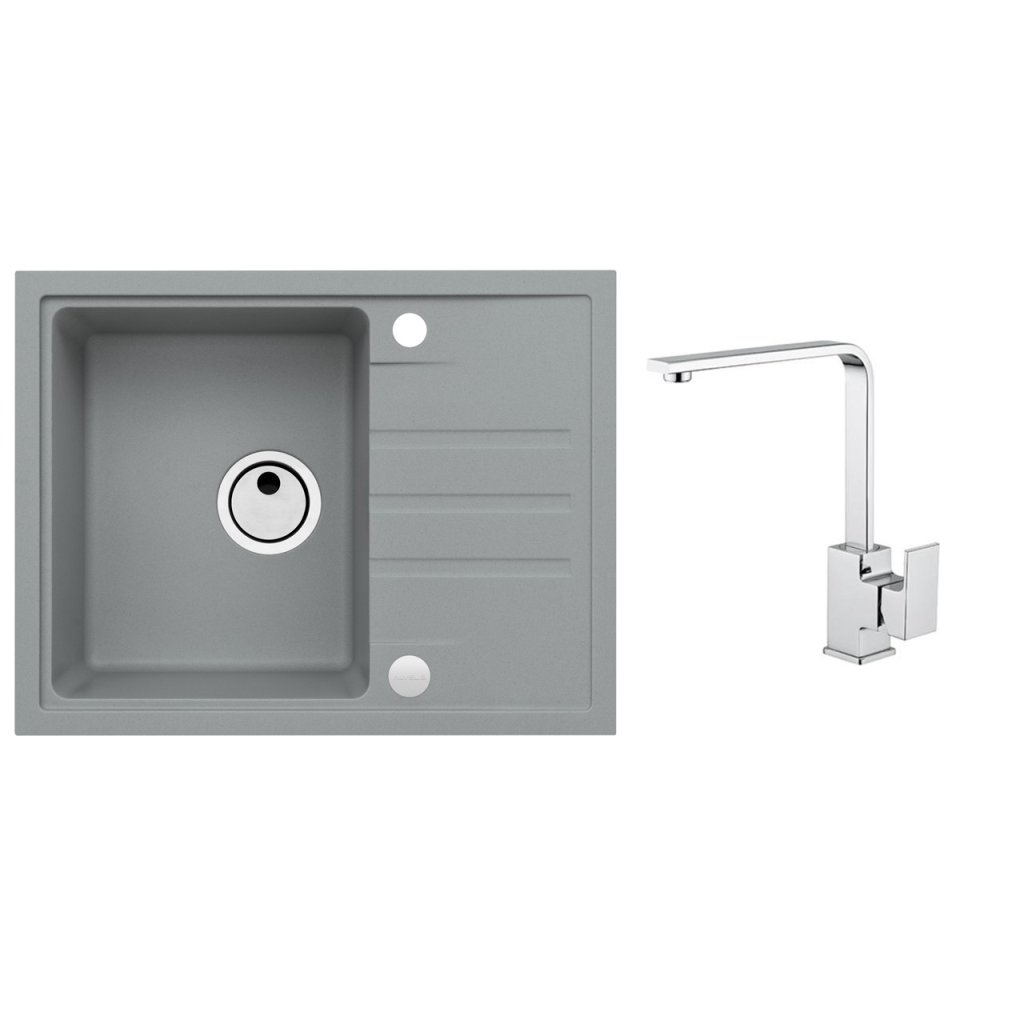 Vestavěný dřez, univerzál. Provedení : granitový dřez Vnější rozměr: 620x480 mm Rozměr vaničky: 330x405x200 mm Manuální sifon 3 1/2 s přepadem, sifon pro úsporu místa s odbočkou na myčku. Úchyty a těsnění pro upevnění dřezu v balení S otvorem pro baterii Návod pro instalaci v obrázcích na obale Instalace do skříňky o šířce 450 mm pro montáž I 800 mm pro montáž U Váha: 13,75 kg Rozměry balení (mm): 695x560x267 Baterie RENO Stojánková baterie Otočné ramínko Rozměr: 207x286 mm Provední chromDoplňkové parametry