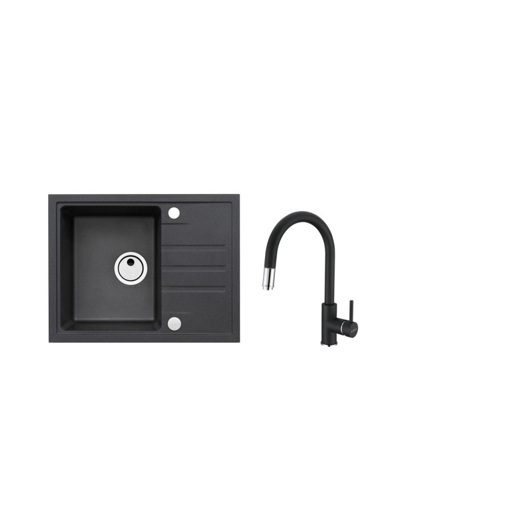 Vestavěný dřez, univerzál. Provedení : granitový dřez s odkapem Vnější rozměr: 595 x 475 mm Rozměr vaničky: 320 x 400 x 160 mm Exentrický sítkový ventil 3 1/2 s přepadem, sifon pro úsporu místa s odbočkou na myčku Úchyty a těsnění pro upevnění dřezu v balení S otvorem pro baterii Návod pro instalaci v obrázcích na obale Instalace do skříňky o šířce 450 mm Váha: 12,27 kg Rozměry balení (mm): 705x565x225 Vysokotlaká baterie otočné ramínko vytahovací sprška rozměr:207 x 380 mm provedení: barevný nástřikDoplňkové parametry