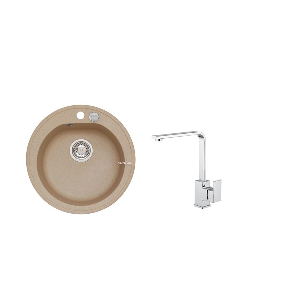 Vestavěný dřez, univerzál. Provedení : granitový dřez s odkapem Vnější rozměr: průměr 510 mm Rozměr vaničky: průměr 400 x 175 mm Exentrický sítkový ventil 3 1/2 s přepadem, sifon pro úsporu místa s odbočkou na myčku Úchyty a těsnění pro upevnění dřezu v balení S otvorem pro baterii Návod pro instalaci v obrázcích na obale Instalace do skříňky o šířce 500 mm Váha: 12,14 kg Rozměr balení (mm): 705x560x267 Baterie Reno Stojánková baterie Otočné ramínko Rozměr: 207x286 mm Provedení chromVlastnosti produktu