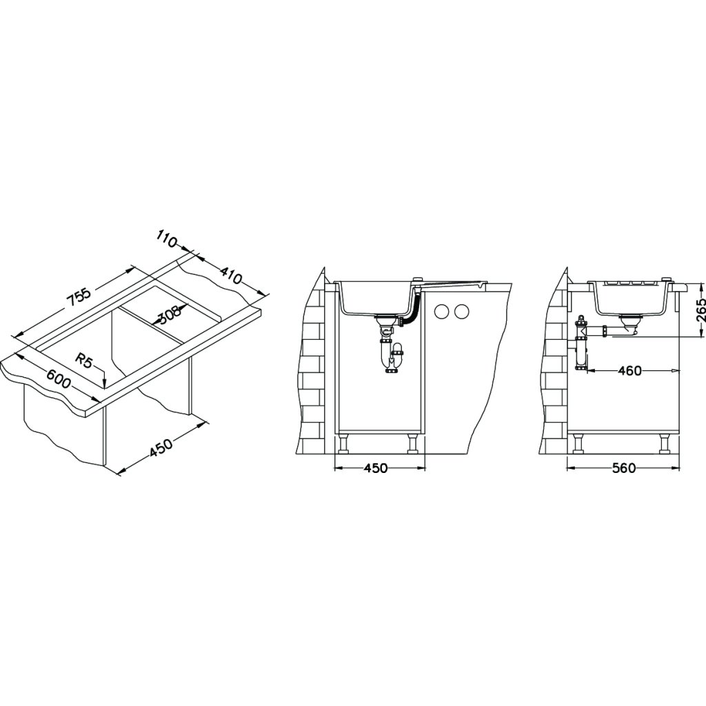 Vestavěný dřez, univerzál. Provedení : granitový dřez s odkapem Vnější rozměr: 775 x 430 mm Rozměr vaničky: 350x350x160 mm Exentický sítkový ventil 3 1/2 s přepadem, sifon pro úsporu místa s odbočkou na myčku Úchyty a těsnění pro upevnění dřezu v balení S otvorem pro baterii Návod pro instalaci v obrázcích na obale Instalace do skříňky o šířce 500 mm Váha: 17,1 kg Rozměr balení (mm): 864x560x220 Baterie Angel Chrom Stojánková baterie Otočné ramínko Rozměr: 215x342 mm Provední chromDoplňkové parametry