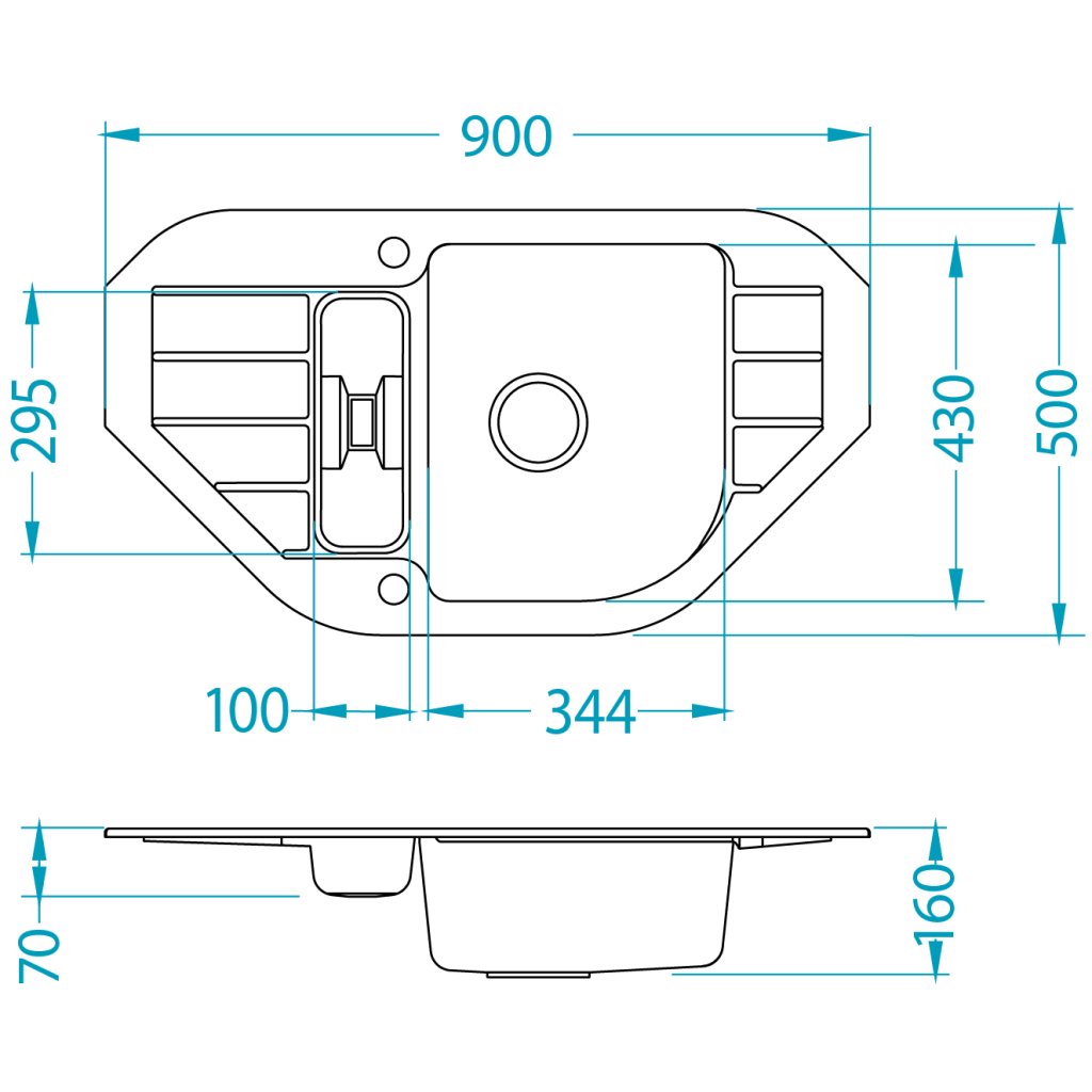 Vestavěný dřez, univerzál. Provedení : granitový dřez s odkapem Vnější rozměr: 900 x 500 mm Rozměr vaničky: 344x430x160 mm 100x295x70 mm Exentický sítkový ventil 3 1/2 s přepadem, sifon pro úsporu místa s odbočkou na myčku Úchyty a těsnění pro upevnění dřezu v balení S otvorem pro baterii Návod pro instalaci v obrázcích na obale Instalace do skříňky o šířce 600 mm, roh 900 mm Váha: 17,3 kg Rozměry balení (mm): 1033x607x220 Baterie Afra Vysokotlaká baterie otočné ramínko rozměr:200 x 323 mm provedení: barevný nástřikDoplňkové parametry