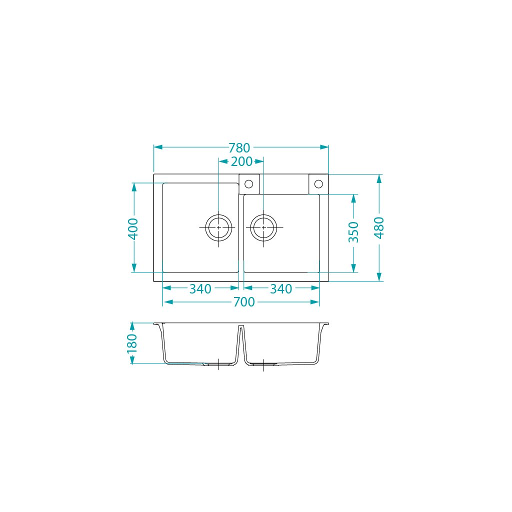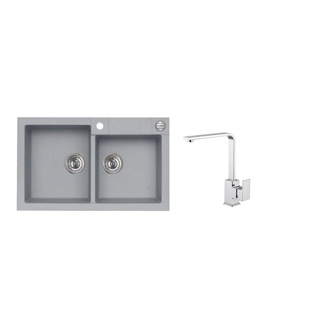 Vestavěný dřez, univerzál. Provedení : granitový dřez Vnější rozměr: 780 x 480 mm Rozměr vaničky: 340 x 400 x 180 mm 340 x 350 x 180 mm Exentrický sítkový ventil 3 1/2 s přepadem, sifon pro úsporu místa s odbočkou na myčku Úchyty a těsnění pro upevnění dřezu v balení S otvorem pro baterii Návod pro instalaci v obrázcích na obale Instalace do skříňky o šířce 800 mm Váha: 21,45 kg Rozměr balení (mm): 865x560x220 Baterie RENO Stojánková baterie Otočné ramínko Rozměr: 207x286 mm Provední chromDoplňkové parametry
