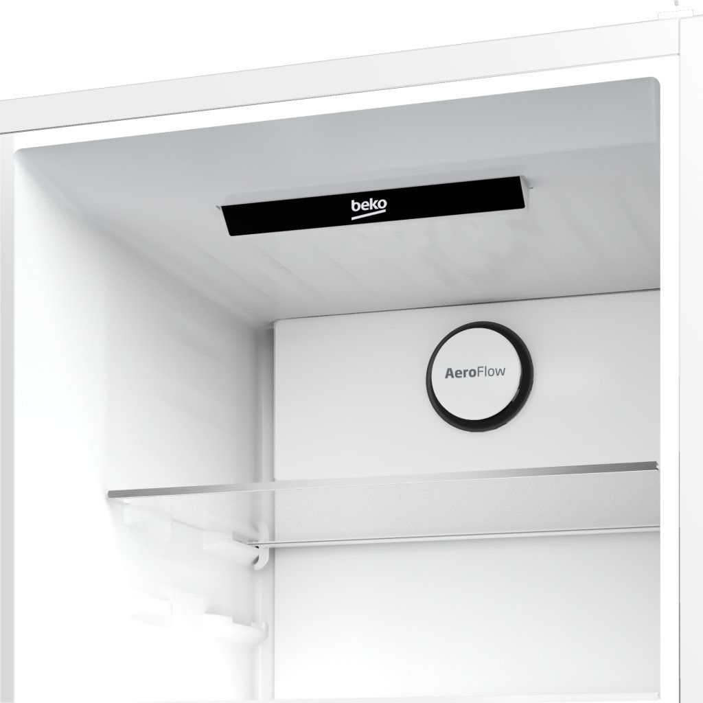 Méně nakupování díky šetrnému chlazeníAeroFlow™ je šetrná cirkulace chladného vzduchu v prostoru lednice, která uchová jídlo déle čerstvé. Chladný vzduch o stálé teplotě obklopuje potraviny v celém prostoru lednice rovnoměrně a teplota mezi jednotlivými policemi se tak neliší jako běžně. Navíc vzduch nefouká přímo na potraviny, takže neosychají. Potraviny díky AeroFlow™ vydrží déle, uchovávají si svoji chuť i živiny.