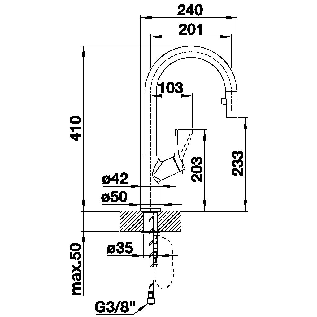 - Pružné připojovací hadice o délce 450 mm a s 3/8“ maticí pro mimořádně snadnou a bezpečnou montáž