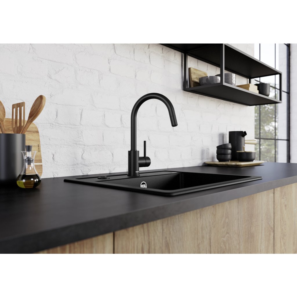 Blanco MIDA-S černá matná, baterie s výsuvnou sprchou• Jemně zahnuté raménko na štíhlém těle