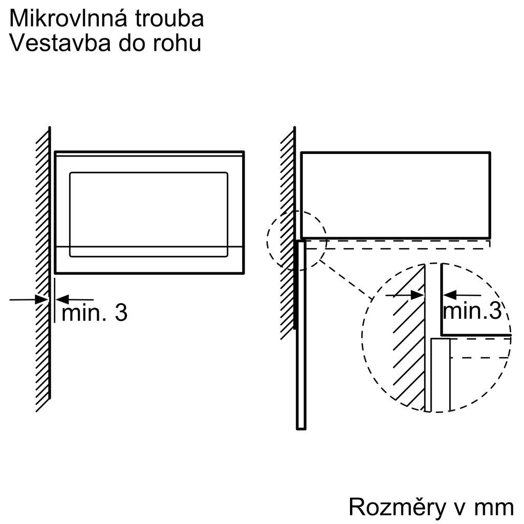 - vestavný spotřebič do horní skříňky o šířce 60 cm s hloubkou min. 30 cm, pro vestavbu do vysoké skříňky o šířce 60 cm