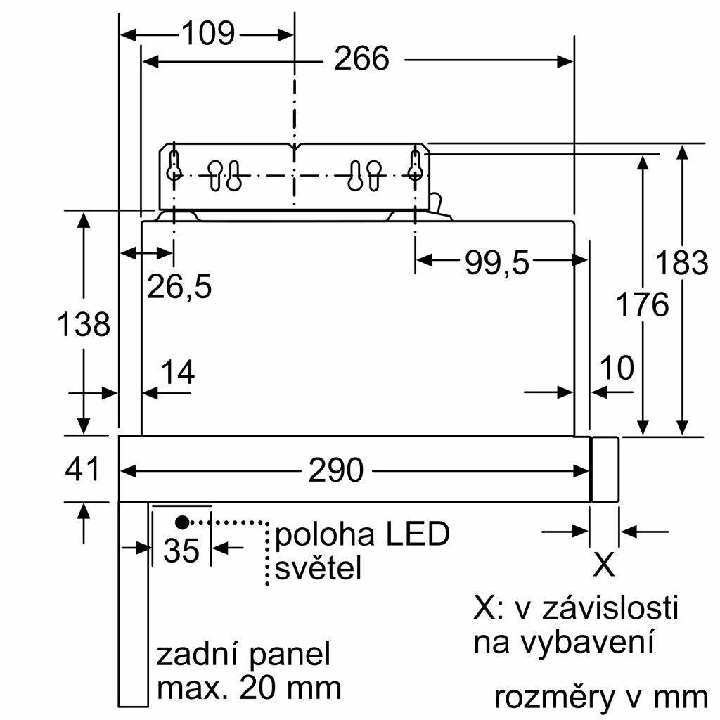 - rozměry pro vestavbu (V x Š x H): 162 x 526 x 290 mm