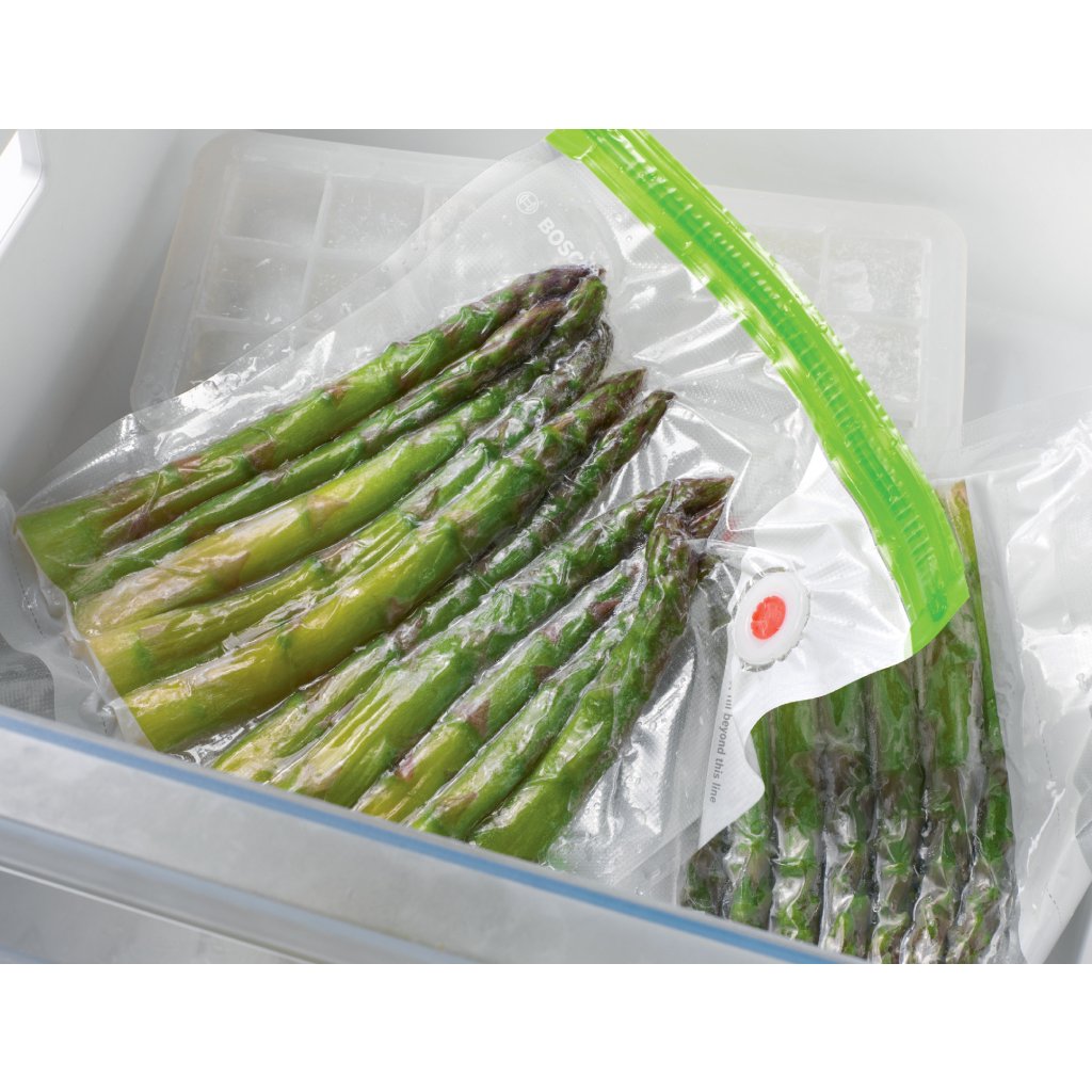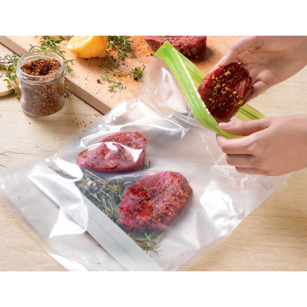 Vakuové sáčky pro opakované použití: materiál neobsahuje BPA, je odolný proti roztržení, s praktickým dvojitým zipem, vhodný do myčky nádobí.