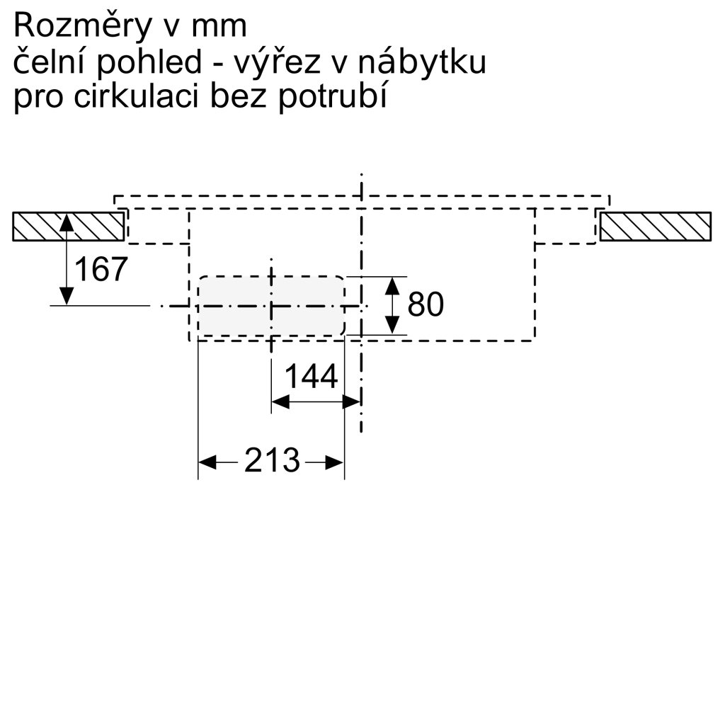 - - pod varnou desku s integrovaným ventilačním systémem není nutné instalovat mezidno. Zásuvky a / nebo police musí být odnímatelné. Zadní panel korpusu může být zachován, ovšem je nutné zhotovit výřez pro výstup vzduchu (doporučení o umístění a velikosti otvoru naleznete v montážním návodu).