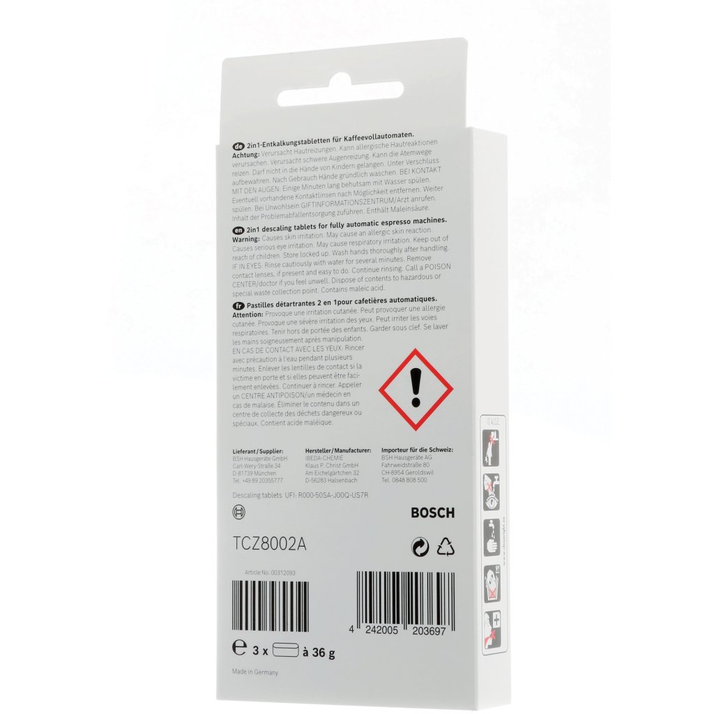 Optimalizováno pro proces automatického odstraňování vodního kamene plně automatických espresso kávovarů Bosch