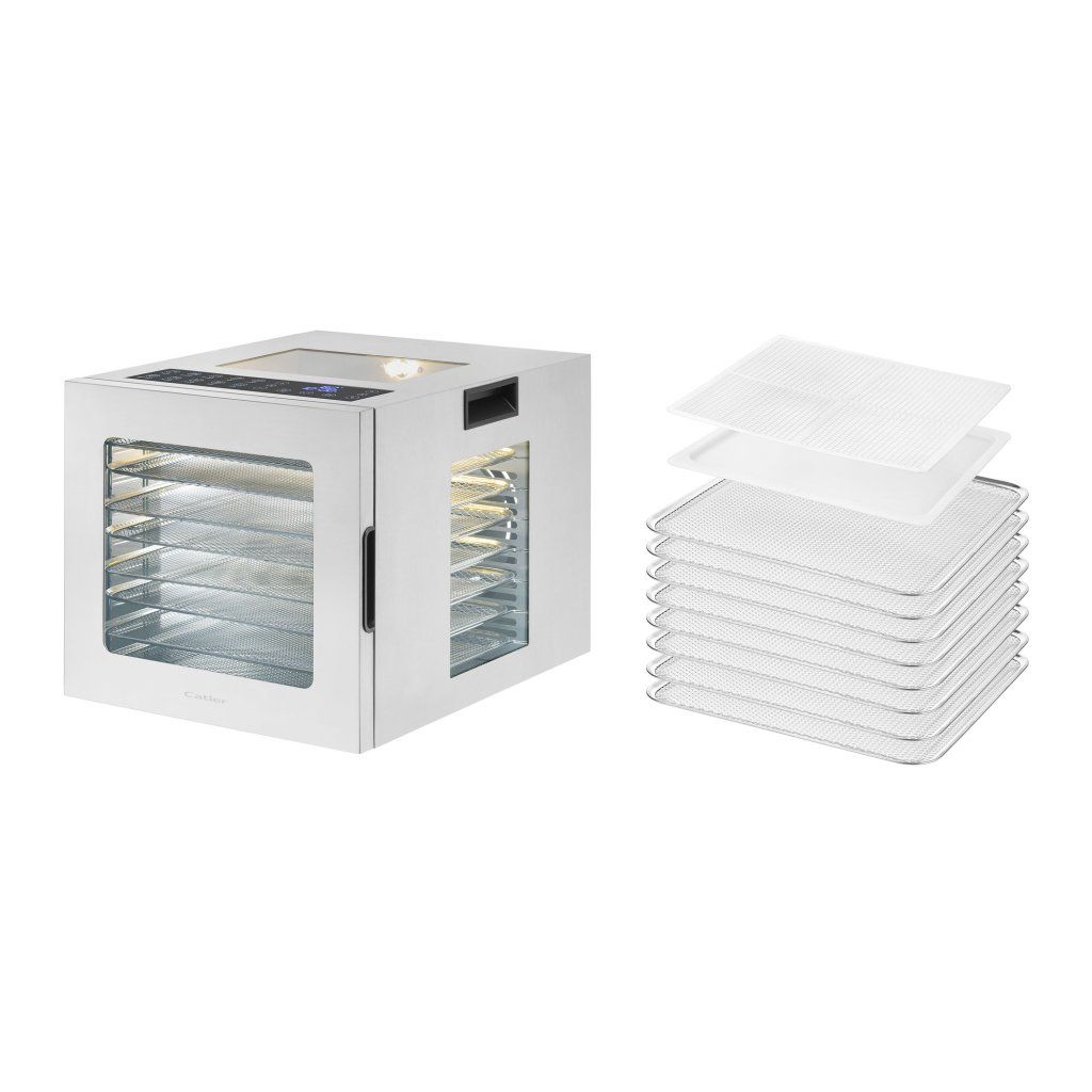 Sušička potravin FD 4011 Catler je navržena pro všechny, kteří chtějí uchovat čerstvost a chuť sezónních potravin po celý rok. Díky robustnímu nerezovému provedení uvnitř i vně, kompletně bez plastových částí, nabízí dlouhou životnost a snadnou údržbu. Skleněné dvířka s průhledy ze všech stran a vnitřní osvětlení umožňují neustálou kontrolu nad procesem sušení.