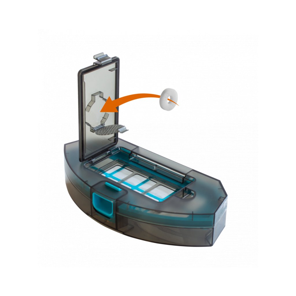 Vysavač VR2020 je vybaven chytře vymyšlenou přihrádkou na umístění aroma tablety. Ta během vysávání eliminuje nepříjemné pachy z usazeného prachu, místnost příjemně provoní a vám dodá pocit větší čistoty. Aroma tableta není součástí balení. Doporučujeme vybírat vůně do vysavačů tuhé konzistence (vonné tyčinky, kolečka, granulované vůně v uzavřených sáčcích apod.).