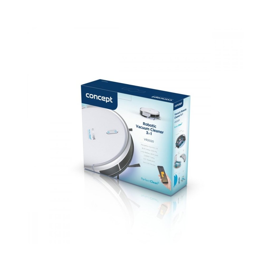 Robotický vysavač VR2020 je vybaven pokročilou navigační technologií GyroTec 2.0. Výborně se orientuje v prostoru a perfektně si poradí se všemi podlahovými krytinami i s členitými prostory. Díky velkým kolům a silnému motoru překoná dveřní prahy a jiné překážky do výše až 1,5 cm. Po dokončení úklidu se automaticky vrátí do nabíjecí stanice. Součástí základní výbavy robota je magnetický pásek, který slouží jako virtuální zeď a lehce s ním vyznačíte prostory, kde nechcete, aby vysavač uklízel.