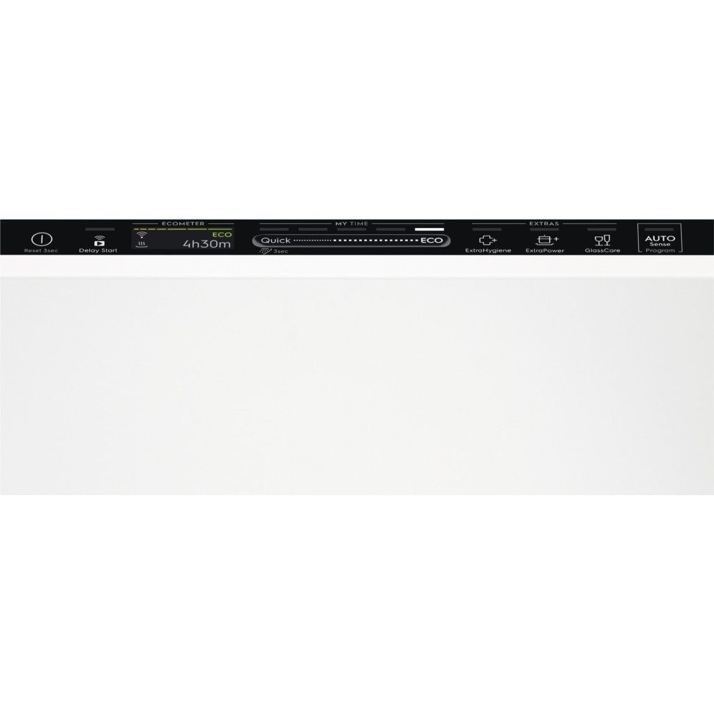 Vestavná plně integrovaná myčka Electrolux EEG88700W GlassCare nabízí špičkovou ochranu křehkého skla díky SoftGrips a SoftSpikes, zásuvku MaxiFlex na příbory, úsporné ovládání QuickSelect s Ecometerem, Wi-Fi připojení, hygienický program Extra Hygiena, promítání času TimeBeam®, vnitřní osvětlení a snadnou instalaci PerfectFit.