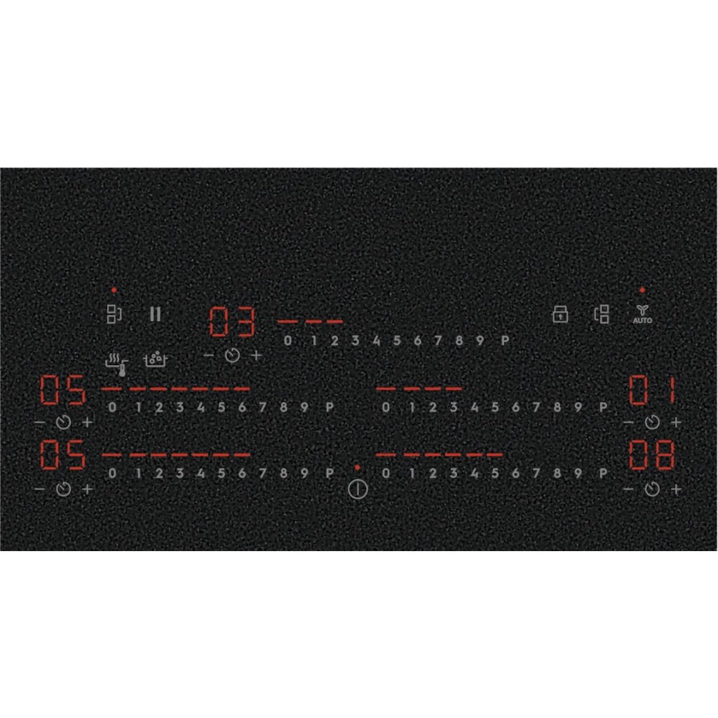 | Kontrolní funkce: | 3 krokové využití zbytkového tepla|akustický signál|funkce POWER (Booster) = rychlé ohřátí|dětský zámek|DoubleBridge|Eco časovač (využití zbytkového tepla)|flexibilní Power Management|Heat memory|propojen s odsavačem Hob2Hood|Samostatné ovládací zóny|zajištění/odjištění ovládacího panelu|minutka|pauza|detekce hrnců a pánví|SenseCook Boil|SenseCook Fry|vypnutí zvuku |