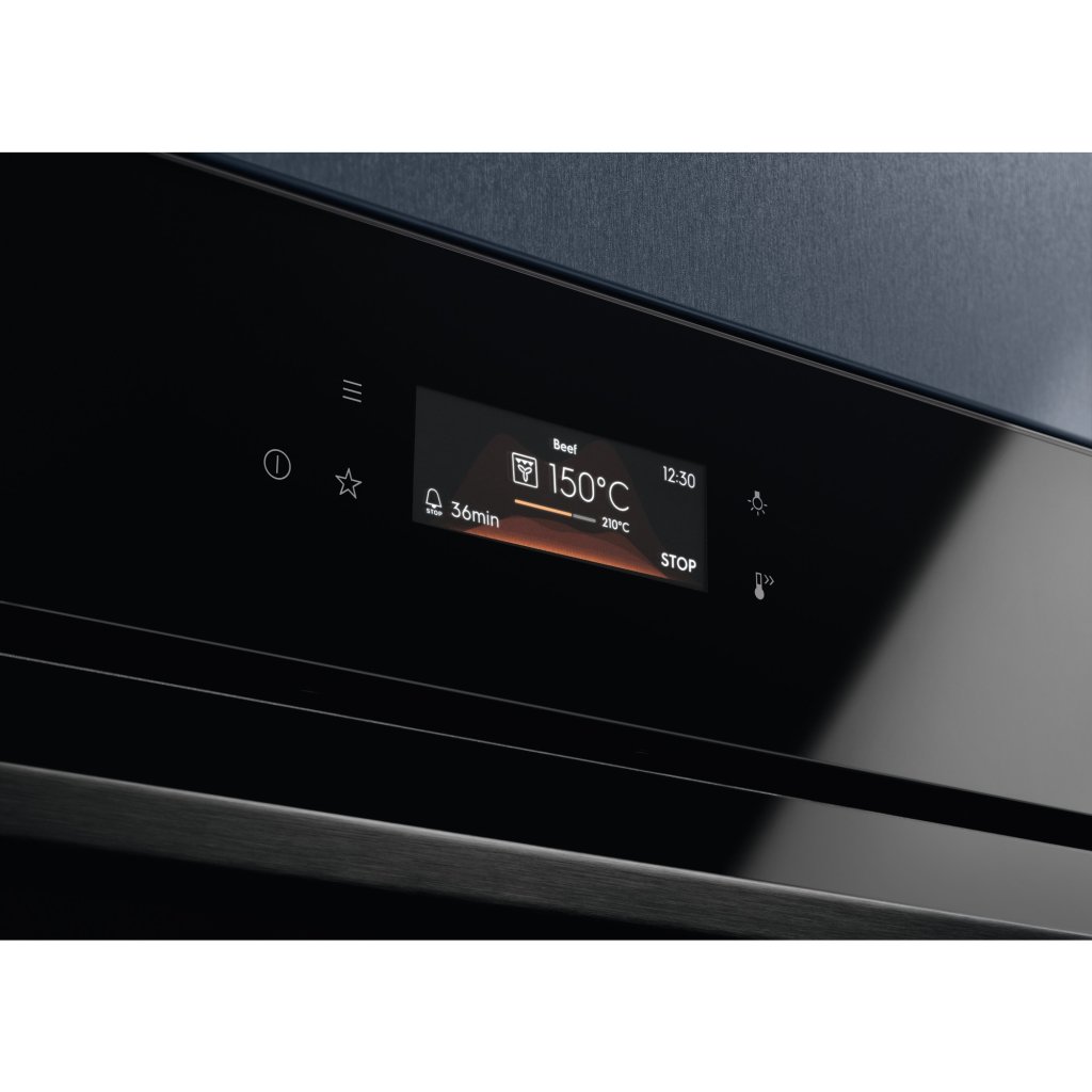 Vestavná trouba Electrolux EOB8S39Z SteamBoost nabízí tři úrovně páry, funkci Steamify® pro automatické nastavení páry, teplotní sondu, intuitivní dotykový displej, rychlé zahřátí, rovnoměrné pečení, parní čištění a bezpečné teleskopické výsuvy.