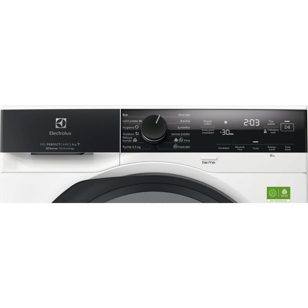 Šetřete čas i energii s dokonalým sušením Sušička 900 PerfectCare si poradí se vším. Systém DelicateCare a technologie 3DSense pomocí snímačů detekuje vlhkost v oděvech a zajišťuje přesné a úplné vysušení. A funkce SmartSave vám umožní ušetřit až 50 minut nebo 20 % energie při každém cyklu.* Vyberte si funkci, která vám více vyhovuje, a užijte si dokonalé výsledky sušení s úsporou času nebo energie. *Na základě interních testů porovnávajících sušičky Electrolux energetické třídy A s tepelným čerpadlem v režimu úspory času a úspory energie se sušičkami Electrolux energetické třídy B při 179minutovém sušení 8kg náplně v programu MixCare.SmartSave – Rychlejší sušení s úsporou až 50 minut nebo až 20 % energie při každém cyklu.* SmartSave představuje špičkovou inovaci v sušení prádla. Vyberte si, jestli chcete ušetřit čas, nebo energii – sušička buď zkrátí dobu sušení až o 50 minut, nebo sníží spotřebu energie až o 20 % během cyklu.* Stačí funkci aktivovat před spuštěním programu a můžete si vychutnat pokročilou technologii navrženou pro maximální účinnost. *Na základě interních testů porovnávajících sušičky Electrolux energetické třídy A s tepelným čerpadlem v režimu úspory času a úspory energie se sušičkami Electrolux energetické třídy B při 179minutovém sušení 8kg náplně v programu MixCare.