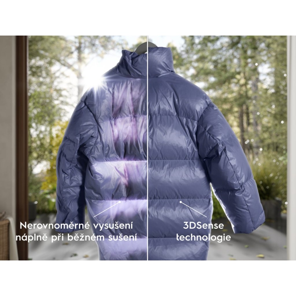 Naše jedinečná technologie 3DSense zjišťuje vlhkost v oblečení pro jeho přesné a úplné vysušení. Tím zajistí dokonalý výsledek i u peřin, polštářů nebo oděvů ze silné vícevrstvé látky. Péřové bundy si uchovají svůj vzhled a zůstanou nadýchané s dokonalou tepelnou izolací.