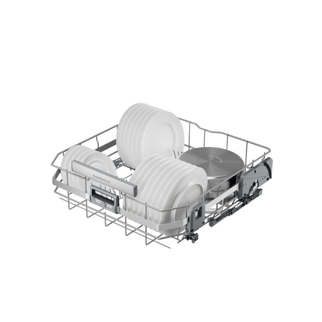 Výkonné a účinné mytí, prostorné a flexibilní koše Řada 800 má vysoký mycí výkon, který zcela odstraní připečené nebo zaschlé zbytky potravin. Minimální spotřeba vody – pouhých 8,4 litru. Flexibilní koše s hladkým pojezdem mají sklápěcí řady a držáky navíc na ochranu sklenic.Plně naložený spodní koš se na zesílených závěsech dá zvednout o 25 cm. Zvedací mechanismus: ComfortLift® umožňuje zvednout spodní koš do výšky horního koše pro rychlejší, jednodušší plnění a vykládání nádobí. Zesílený mechanismus pantů prošel testy na zvedání zcela naplněného spodního koše do výšky horního koše.