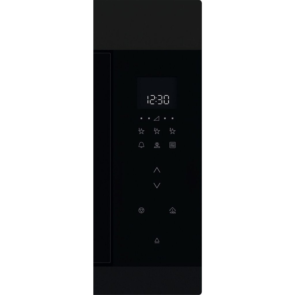 Prémiový matně černý povrch dvířek mikrovlnné trouby kontrastuje s prvky v černém lesku. Designově tak ladí s ostatními spotřebiči v kuchyni.
