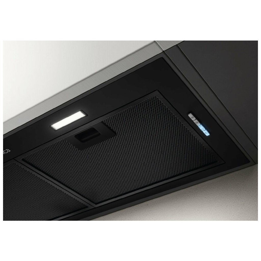 Integrovaný odsavač par, Barva: Černá, Energetická třída: B, Šířka: 60 cm, Výkon odsávání: 505 m3/h, Průměr odtahu: 150 mm, Směr odtahu: Horní, Možnost recirkulace i odtahu ven