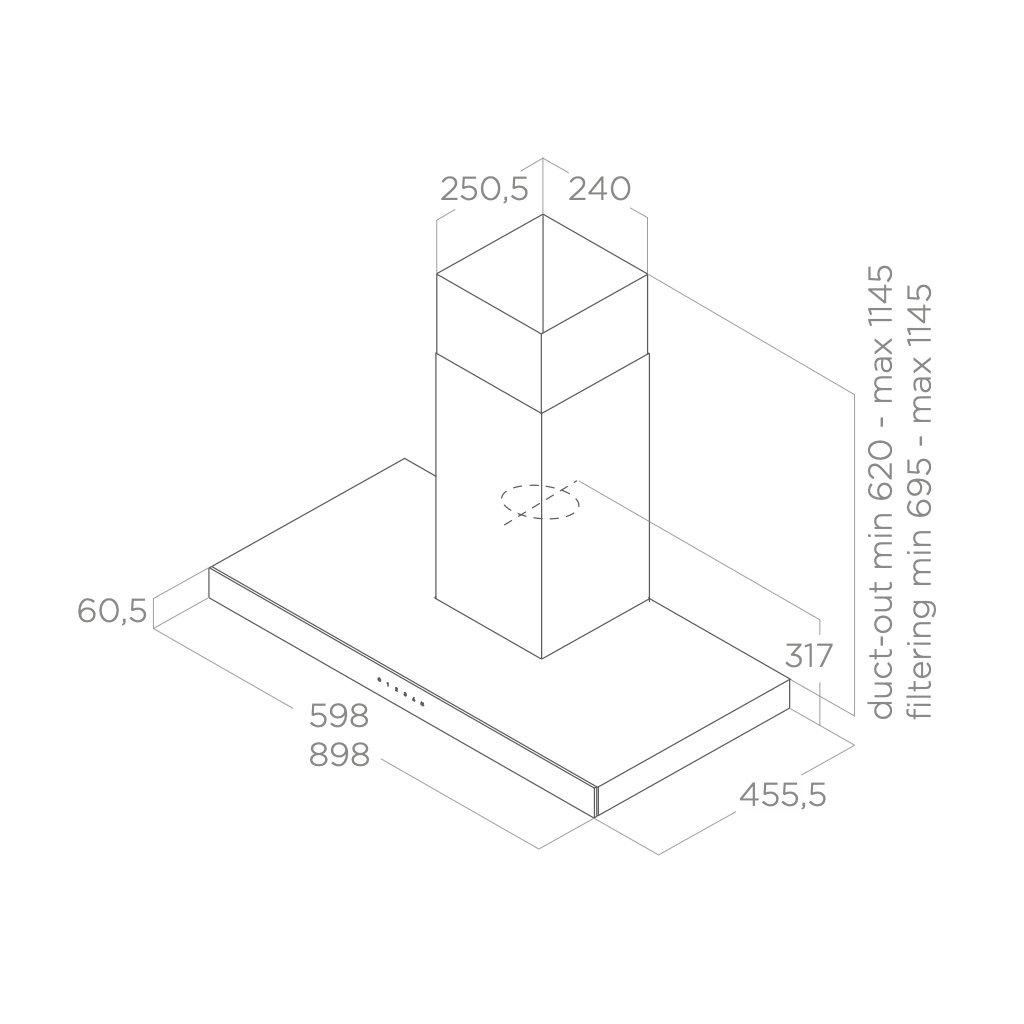 Komínový odsavač par, Barva: Černá, Energetická třída: B, Šířka: 90 cm, Výkon odsávání: 580 m3/h, Průměr odtahu: 150 mm, Směr odtahu: Horní, Možnost recirkulace i odtahu ven