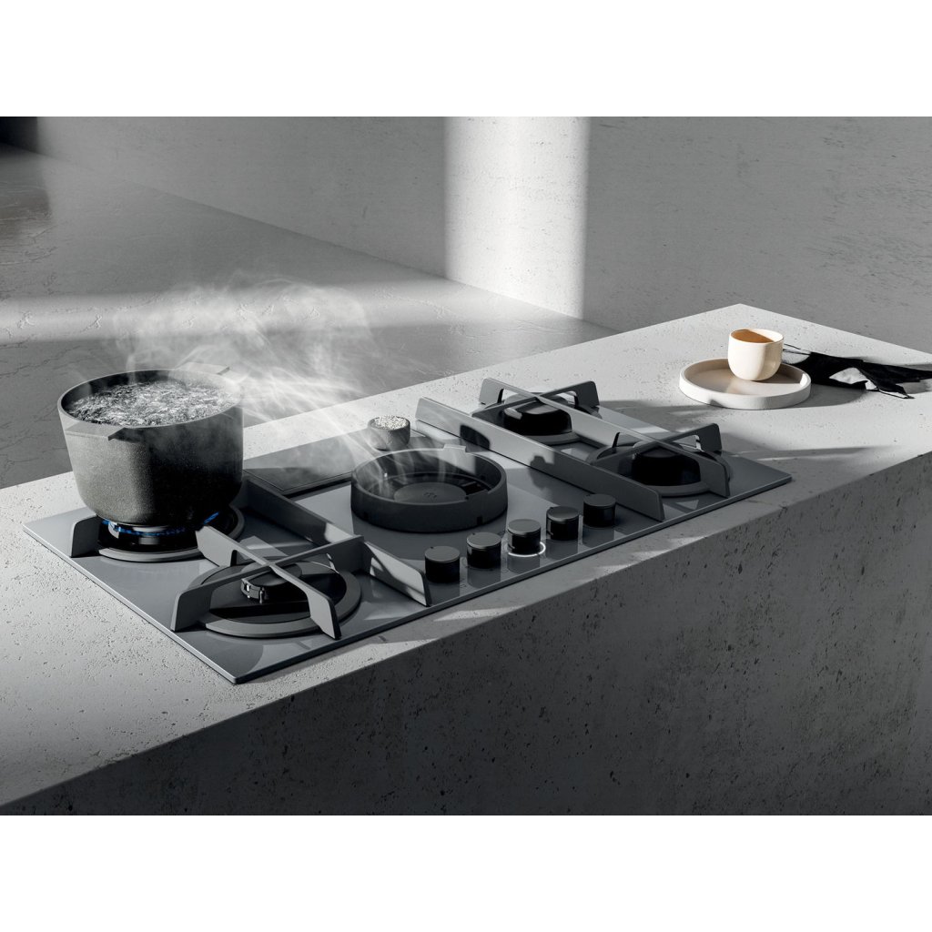Představujeme první plynovou varnou desku s integrovaným odsavačem par ELICA NIKOLATESLA FLAME, navrženou designérem FABRIZIO CRISA a představenou na veletrhu EUROCUCINA 2018. Tento inovativní spotřebič v provedení z šedého bezpečnostního skla kombinuje klasické plynové vaření s moderním odsáváním par.