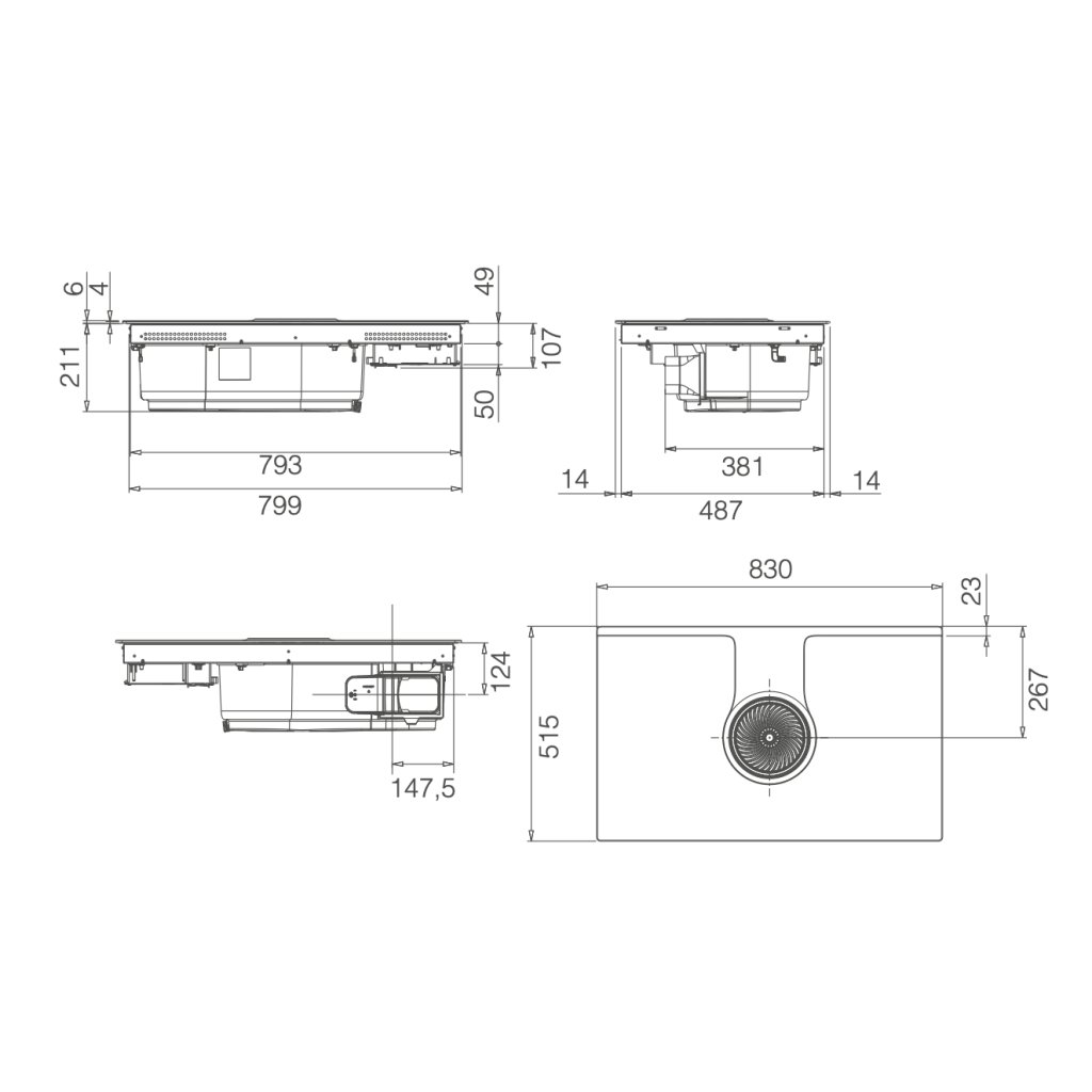 Kombinovaná varná deska s odsavačem, Barva: Černá, Energetická třída A+, Ovládání pomocí dotykového slideru, Prostor pro instalaci (VxŠxH): , 212x780x490, Výkon odsávání: 630...