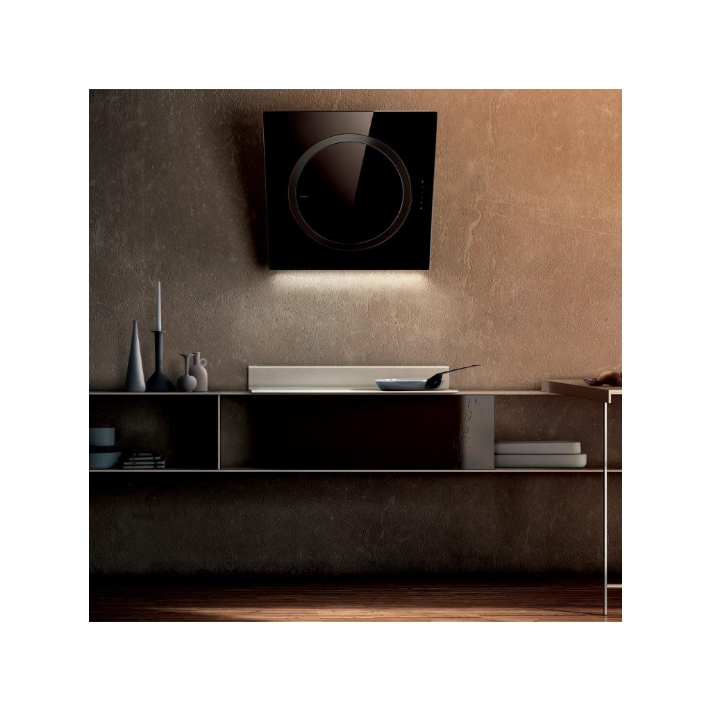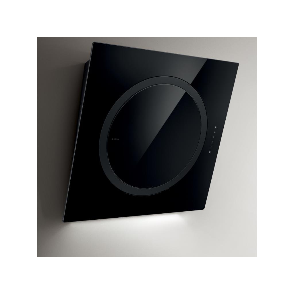je komínový odsavač par (digestoř) z černého bezpečnostního skla s černým středovým kruhem, po zapnutí se středový kruh zasune dovnitř a umožní tak perimetrické sání. Odsavač par (digestoř) nabízí velký výkon od 230-510 m3/h a v intenzivním výkonu dokonce 650 m3/h, mile překvapí nízkou hlučností 42-66 db(A).