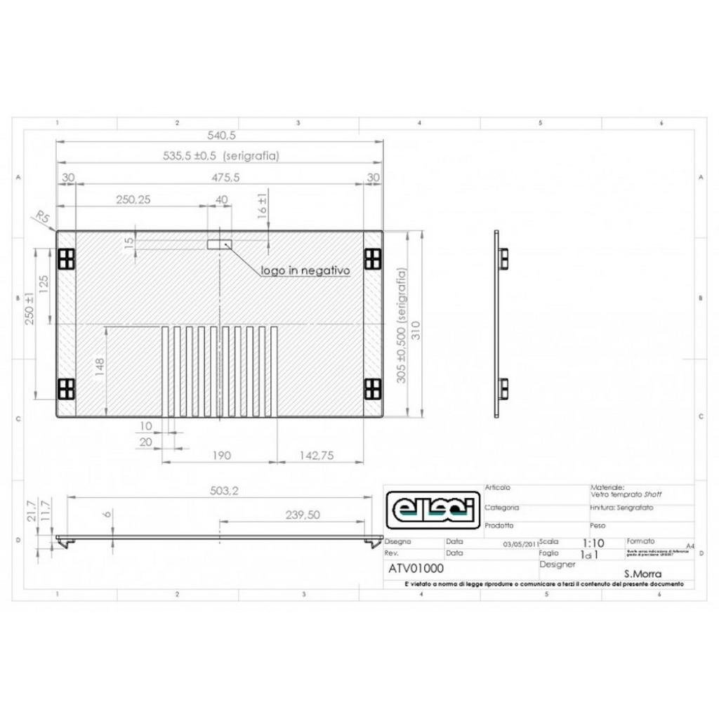 Skleněná posuvná krájecí deska ELLECI ATV01000
