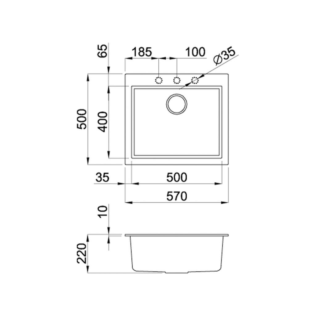 Elleci QUADRA 105 57x50 1V G51 Granitový dřez