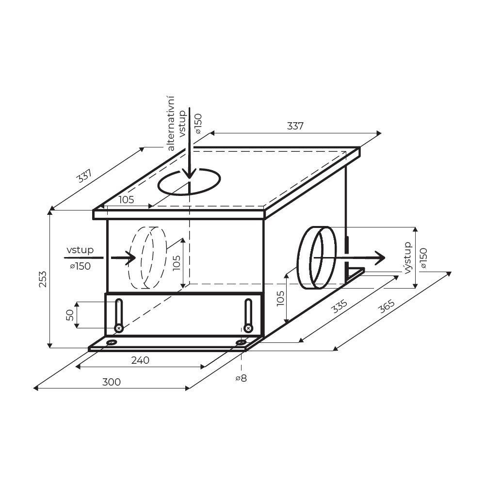 Externí ventilační jednotka EVJ M8K je určena pro spojení s bezmotorovými digestořemi HEAVEN GLASS RB, HEAVEN RB a FABULA RB. Je vybavena spojovacím kabelem s konektory v délce podle vašeho přání. Vše je připraveno pro snadnou instalaci, stačí propojit konektor spojovacího kabelu s konektorem digestoře.EVJ musí být umístěna vždy uvnitř domu, aby byla chráněna před povětrnostními vlivy. Může být instalována ve více polohách, připojení potrubí může být v ose nebo v úhlu 90°.Zůstává zachováno originální spojení motor – elektronika – ovládací panel, takže všechny funkce zůstávají zachovány.Připojení k elektrické síti je v místě digestoře. Při stavební přípravě je třeba připravit průchodky o průměru min. 45 mm pro protažení spojovacího kabelu s konektorem.EVJ doporučujeme instalovat co nejdále od digestoře. Je vhodné použít tlumič hluku, minimalizuje se tím zpětné pronikání hluku potrubím, při maximálním výkonu až o 13 dB(A).Cena zahrnuje propojovací kabel v délce 4 metry. Za každý další metr propojovacího kabelu se cena navyšuje o 100 Kč.Jedná se o zakázkovou úpravu, proto je třeba počítat s delší dobou dodání - 10-15 pracovních dnů.NELZE OBJEDNAT SAMOSTATNĚ, POUZE S ODSAVAČEM JAKO KOMPLET!!!