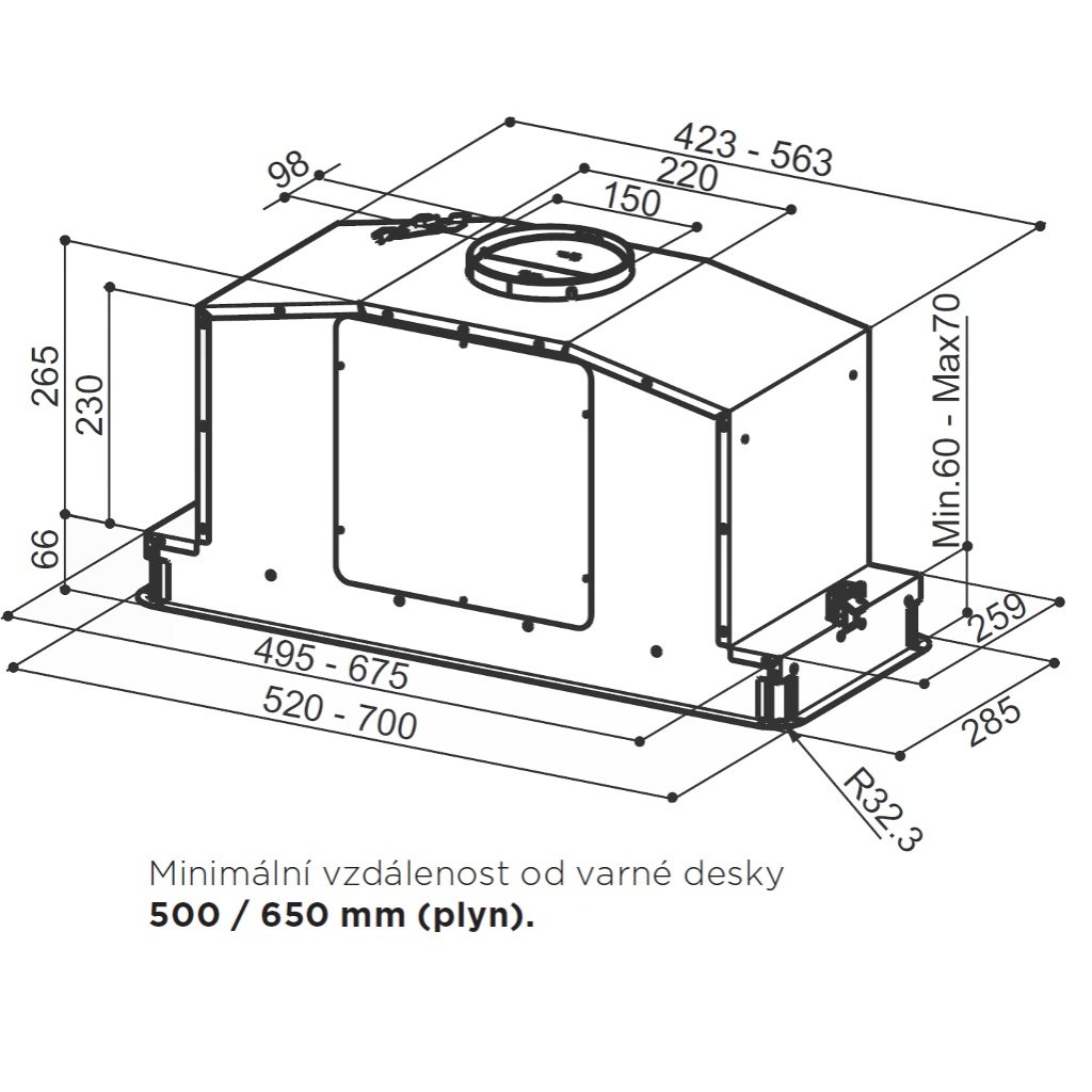 Luxusní vestavná digestoř IN-LIGHT je přepychovým modelem, který dokonale zapadne do designu vaší kuchyně. Byla konstruována podle posledních trendů s důrazem na nápadité detaily, přesto však tak, aby nenarušila čistou linii kuchyně.Na první pohled vás zaujmou elegantní křivky s ladně zaoblenými rohy, zcela rovná pohledová část a především neobvyklé obvodové osvětlení, které digestoři propůjčuje nezaměnitelný osobitý styl.Vysoký výkon matně bílé digestoře spolehlivě zajistí moderní ventilační jednotka EVO, která vyniká nízkou spotřebou energie a je zařazena do energetické třídy A.Zajímavou možností je přemístění motoru digestoře mimo kuchyni. Systém REMOTE BLOWER umožňuje upravit digestoř na digestoř bezmotorovou a s použitím původního motoru vytvořit externí ventilační jednotku EVJ, kterou můžete umístit do komory, technické místnosti či na půdu domu.Lze ji také propojit se střešní externí ventilační jednotkou VILPE, která je k dispozici ve více barevných provedeních, nebo s externím motorem na fasádu MISTRAL. Technické parametry digestoře jsou pak shodné s parametry vybrané externí ventilační jednotky.V obou případech zůstávají zachovány všechny funkce digestoře a její provoz se stává bezhlučným.Vzduch je nasáván štěrbinou po obvodu panelu překrývajícího filtry. Koncentrovaný proud vzduchu proudí mnohem rychleji a získává vlastnost strhávat sebou i páry v širším okolí sací zóny. Štěrbinové sání oceníte zejména u plně vestavných digestoří, které svým rozměrem varnou zónu nikdy zcela neobsáhnou.Odsavač se může pyšnit nadstandardním množstvím funkcí, je vybaven intenzivním odsáváním, signalizací nasycení filtrů, možností doběhu po ukončení vaření a funkcí ventilace "24", která zabezpečí celodenní ventilaci vaší kuchyně. Veškeré funkce můžete pohodlně ovládat dálkovým ovladačem, který je součástí základní výbavy nebo nízkozdvihovými tlačítky.Digestoř je také možné bezdrátově propojit s indukční varnou deskou FABER. V tomto případě ji můžete ovládat s maximálním komfortem přímo z ovládacího panelu varné desky. Dokonalé osvětlení pracovní plochy je zajištěno atraktivním obvodovým LED páskem s příjemnou intenzitou světla a velmi nízkou spotřebou.Záruka na bezchybnou funkci 5 let.Doplňkové parametry