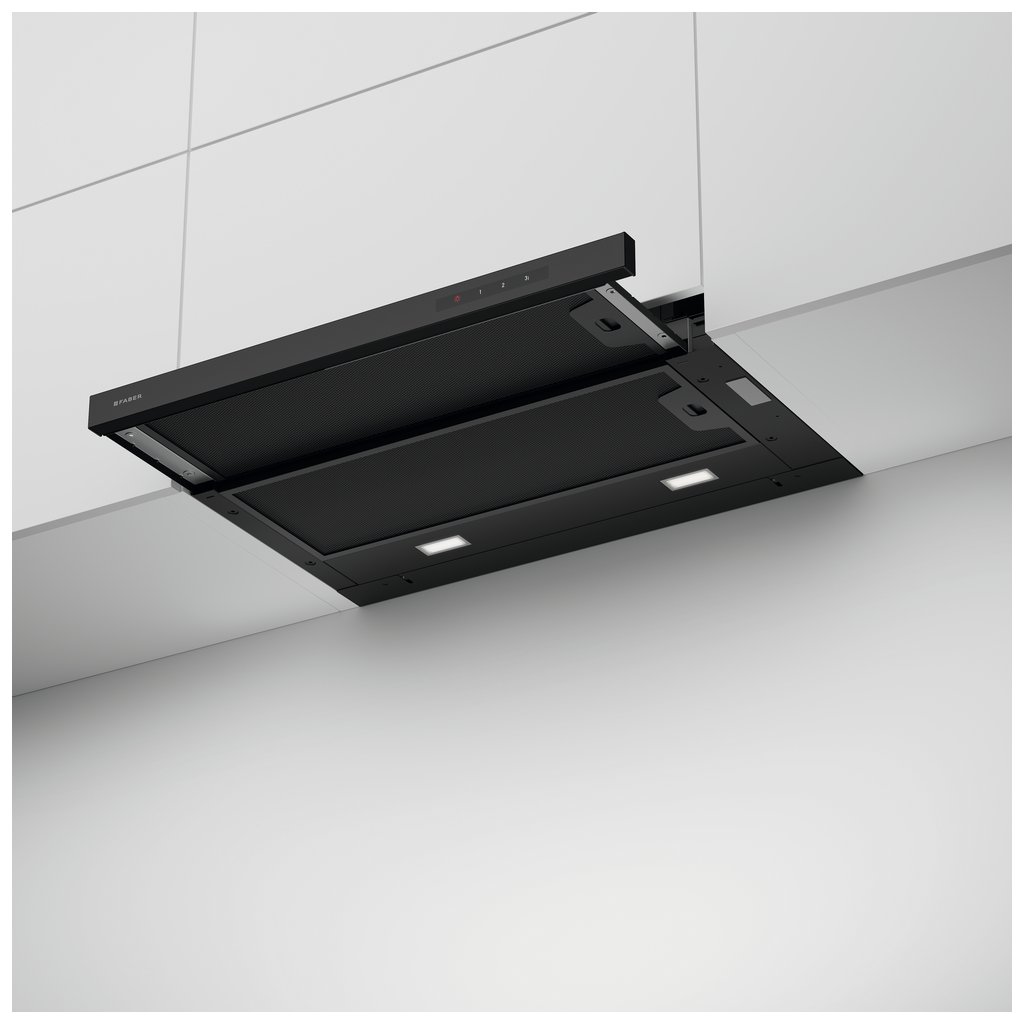 Tři stupně výkonu, funkci intenzivního odsávání nebo doběh po ukončení můžete pohodlně ovládat dotykovým ovládáním, které je umístěno na výsuvné liště. Zasunutím lišty se funkce automaticky deaktivují.